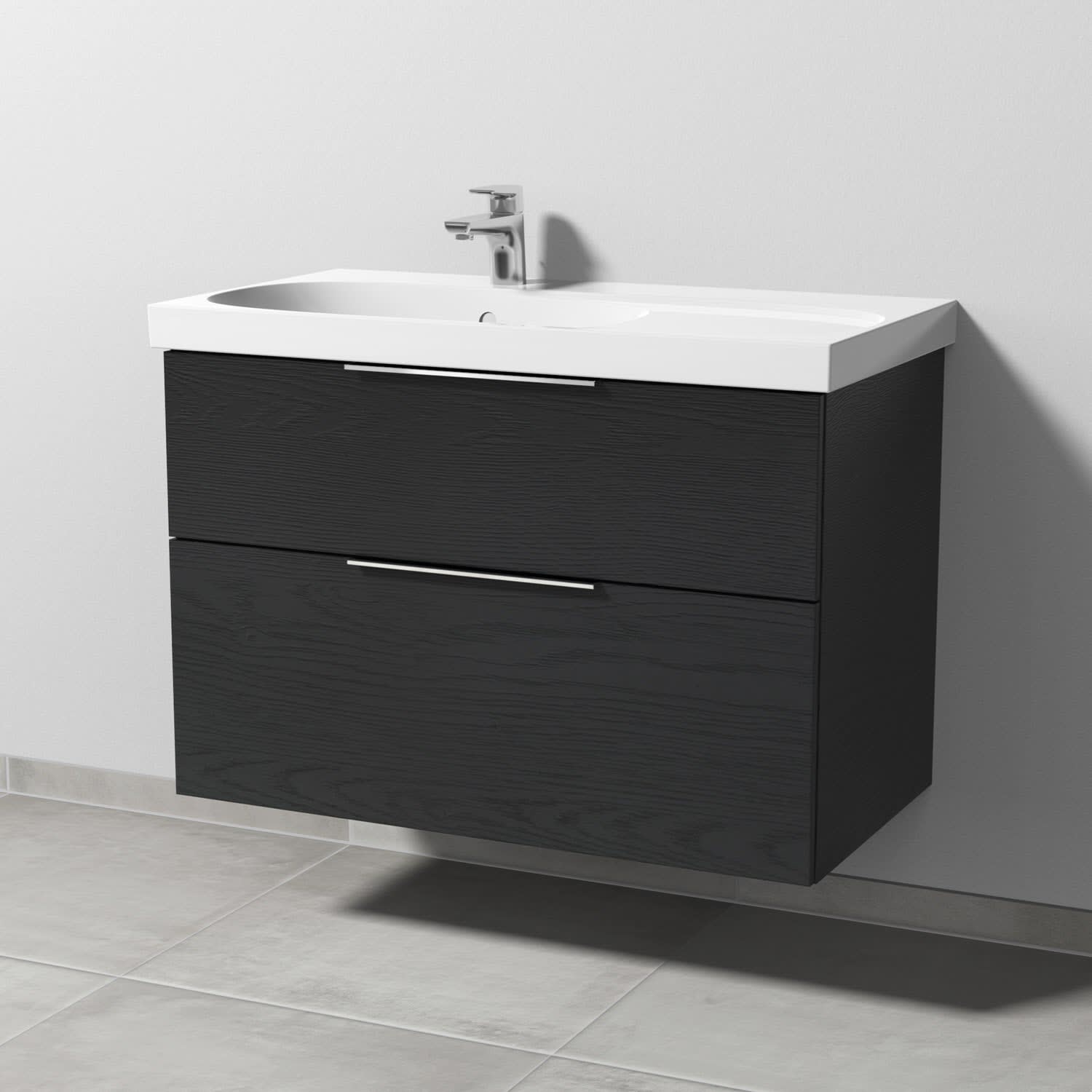Sanipa 3way Waschtischunterbau für Keramik-Waschtisch Acanto 90 cm Ablagefläche rechts, 2 Auszüge mit Aufsatzgriff