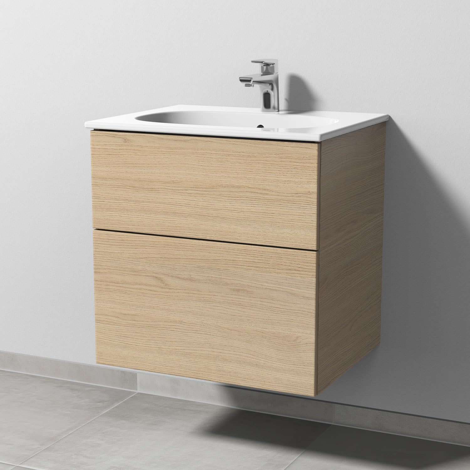 Sanipa 3way Waschtischunterbau für Keramik-Waschtisch Acanto Slim 60 cm, 2 Auszüge mit Push to open