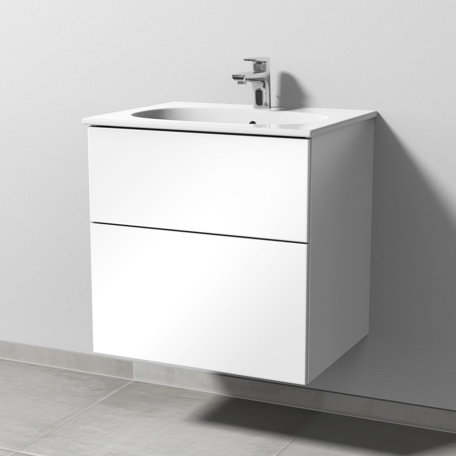 Sanipa 3way Waschtischunterbau für Keramik-Waschtisch Acanto Slim 60 cm, 2 Auszüge mit Push to open