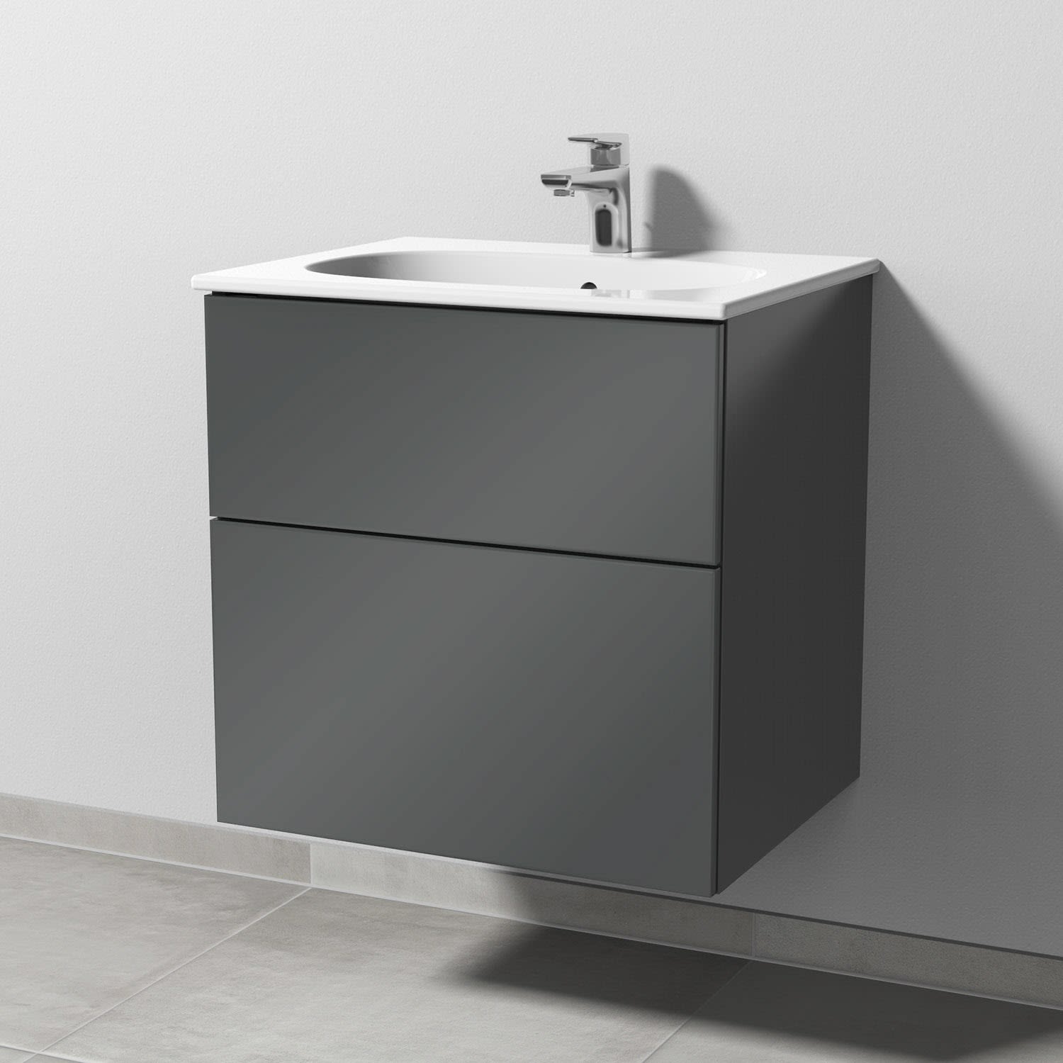 Sanipa 3way Waschtischunterbau für Keramik-Waschtisch Acanto Slim 60 cm, 2 Auszüge mit Push to open