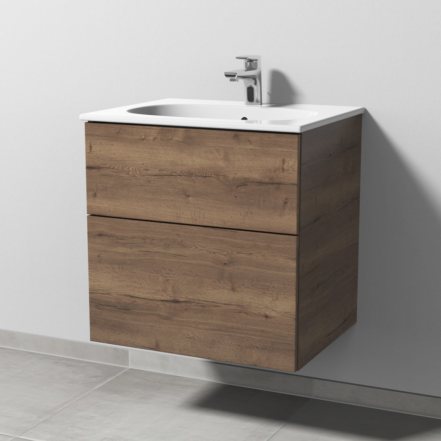 Sanipa 3way Waschtischunterbau für Keramik-Waschtisch Acanto Slim 60 cm, 2 Auszüge mit Push to open