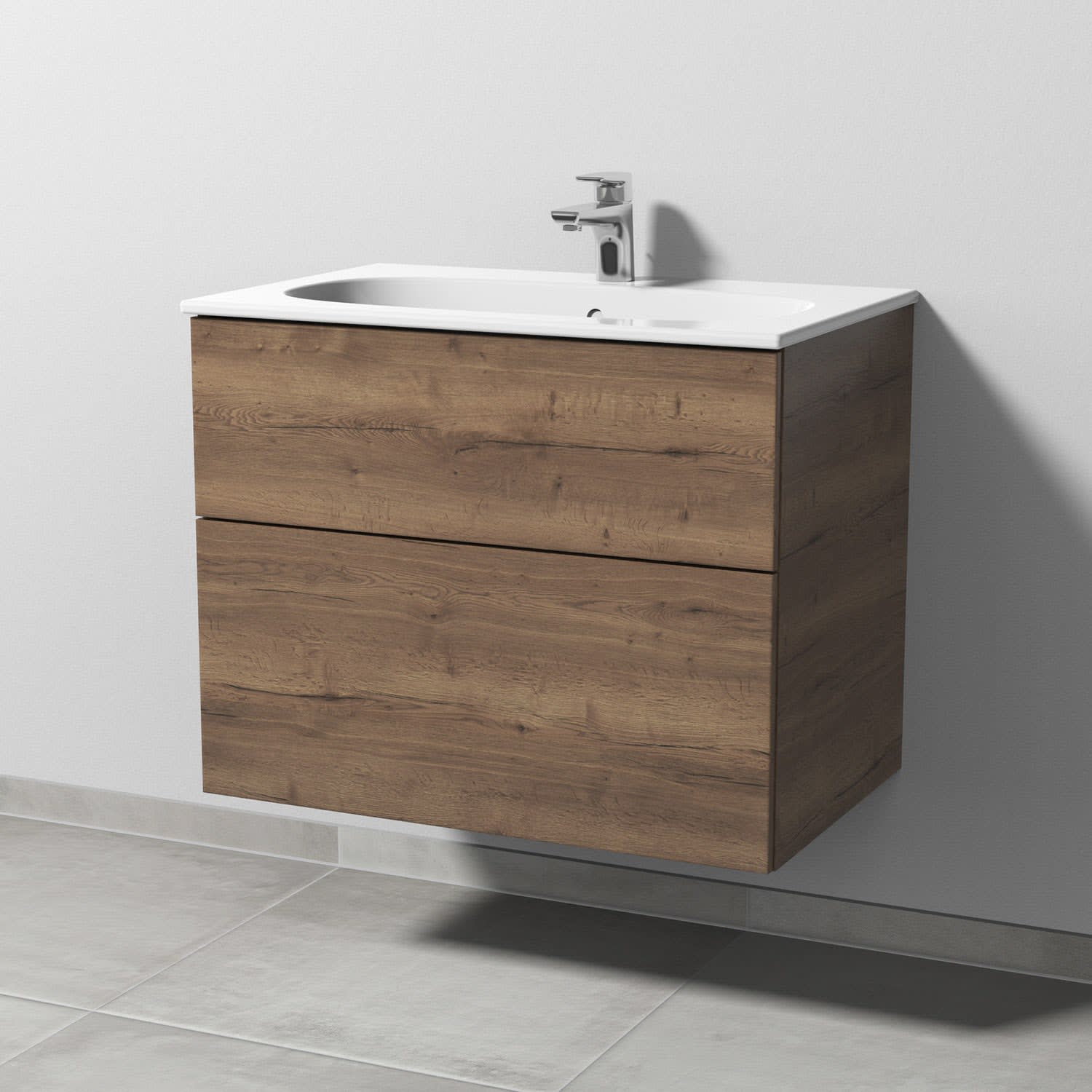 Sanipa 3way Waschtischunterbau für Keramik-Waschtisch Acanto Slim 75 cm, 2 Auszüge mit Push to open