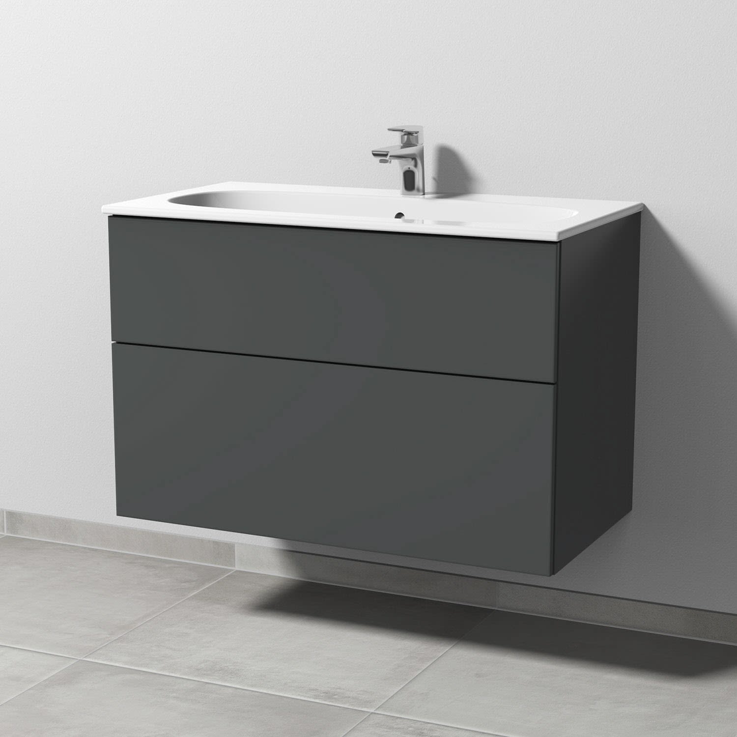 Sanipa 3way Waschtischunterbau für Keramik-Waschtisch Acanto Slim 90 cm, 2 Auszüge mit Push to open