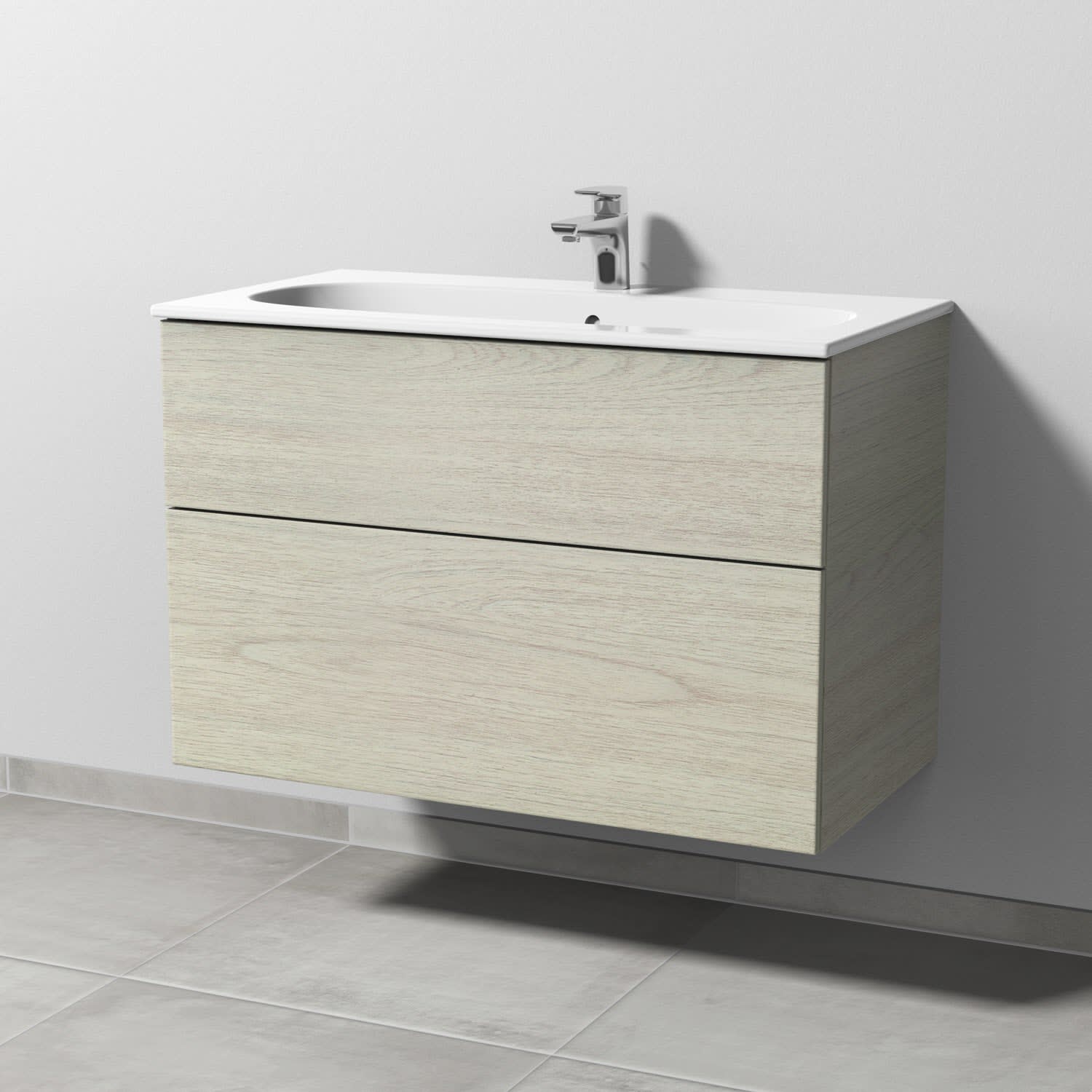 Sanipa 3way Waschtischunterbau für Keramik-Waschtisch Acanto Slim 90 cm, 2 Auszüge mit Push to open
