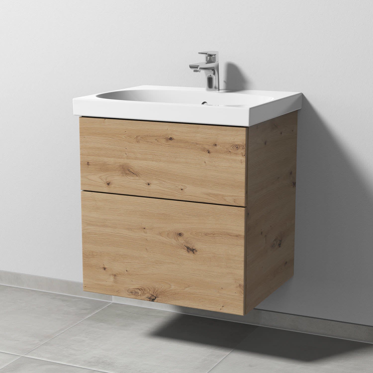 Sanipa 3way Waschtischunterbau für Keramik-Waschtisch Acanto 60 cm, 2 Auszüge mit Push to open