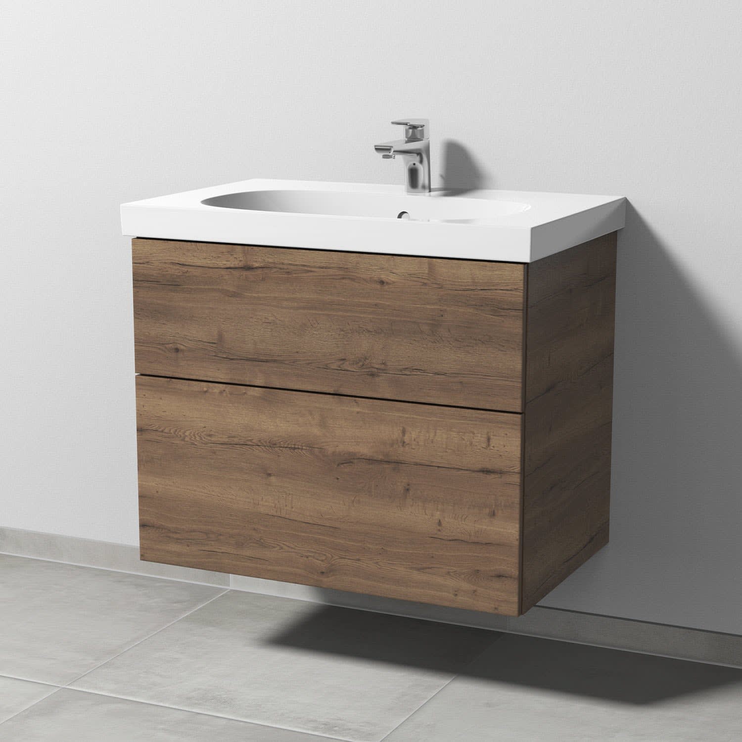 Sanipa 3way Waschtischunterbau für Keramik-Waschtisch Acanto 75 cm, 2 Auszüge mit Push to open