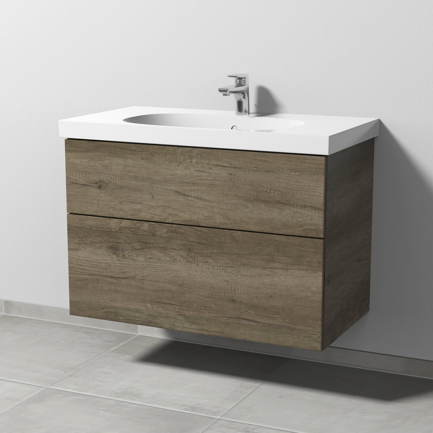 Sanipa 3way Waschtischunterbau für Keramik-Waschtisch Acanto 90 cm, 2 Auszüge mit Push to open
