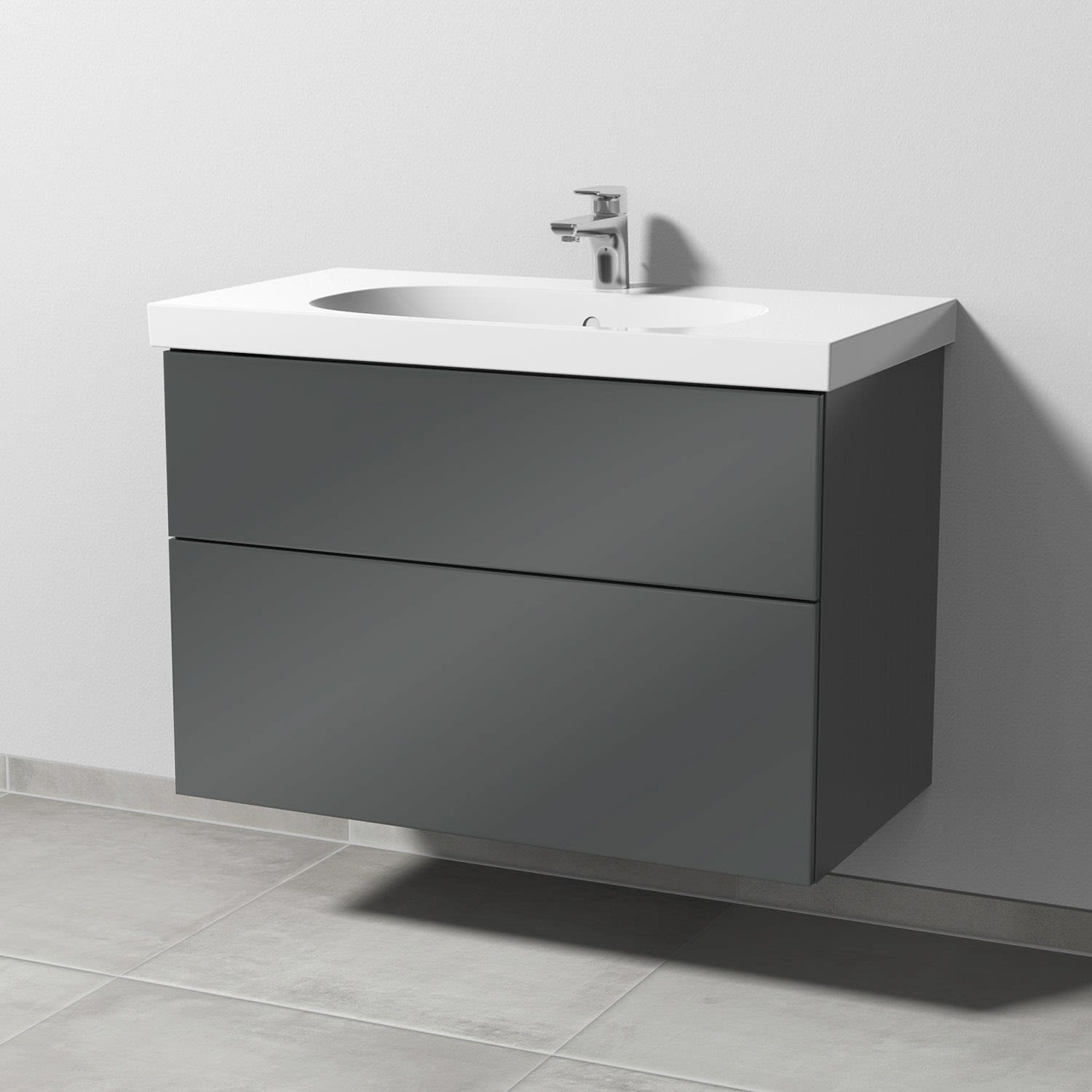 Sanipa 3way Waschtischunterbau für Keramik-Waschtisch Acanto 90 cm, 2 Auszüge mit Push to open