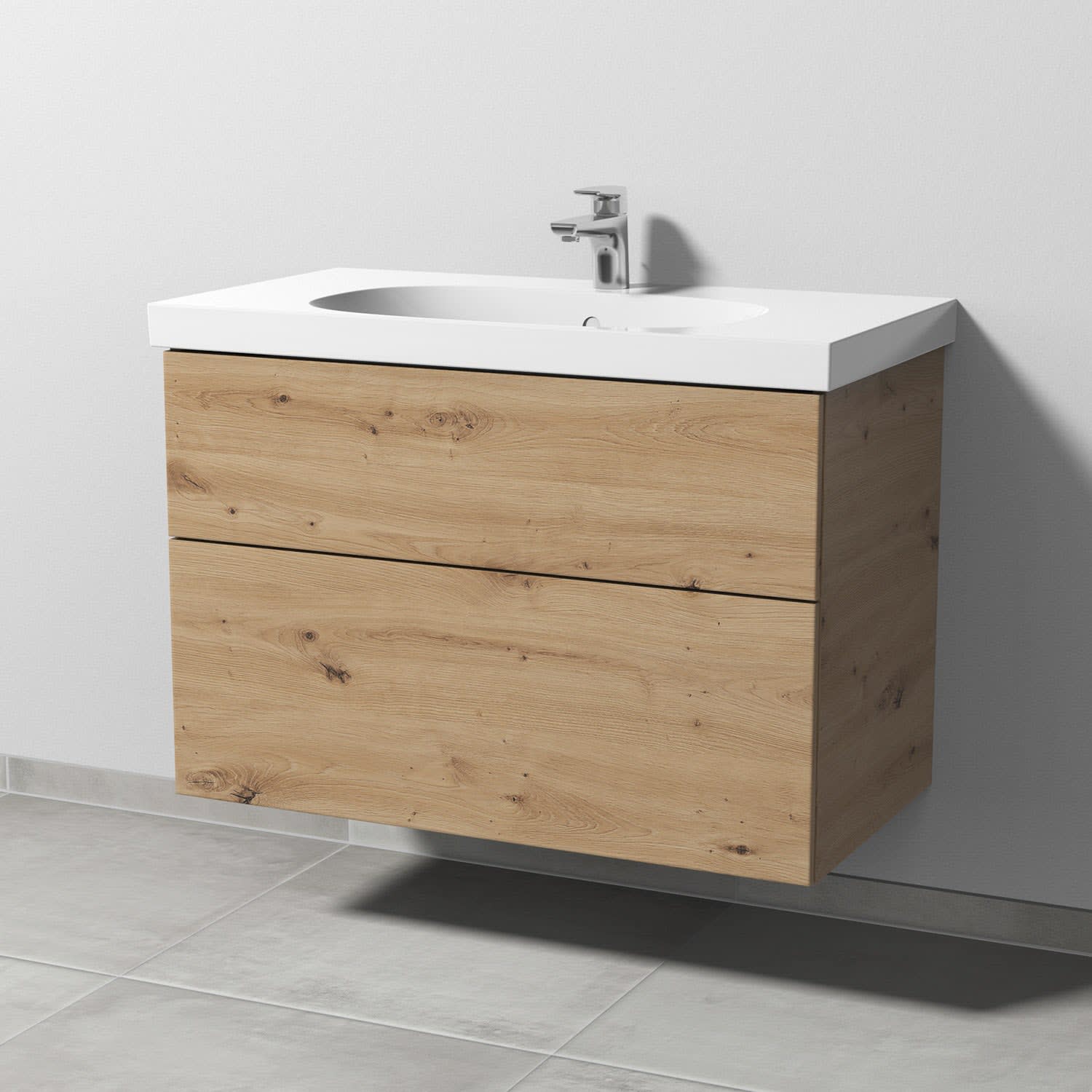 Sanipa 3way Waschtischunterbau für Keramik-Waschtisch Acanto 90 cm, 2 Auszüge mit Push to open