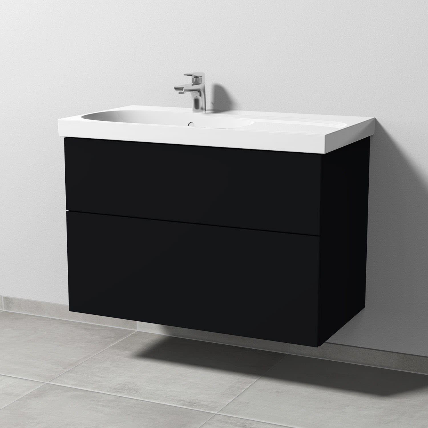 Sanipa 3way Waschtischunterbau für Keramik-Waschtisch Acanto 90 cm Ablagefläche rechts, 2 Auszüge mit Push to open
