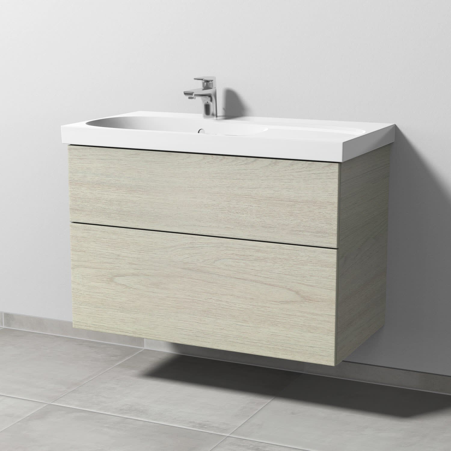 Sanipa 3way Waschtischunterbau für Keramik-Waschtisch Acanto 90 cm Ablagefläche rechts, 2 Auszüge mit Push to open