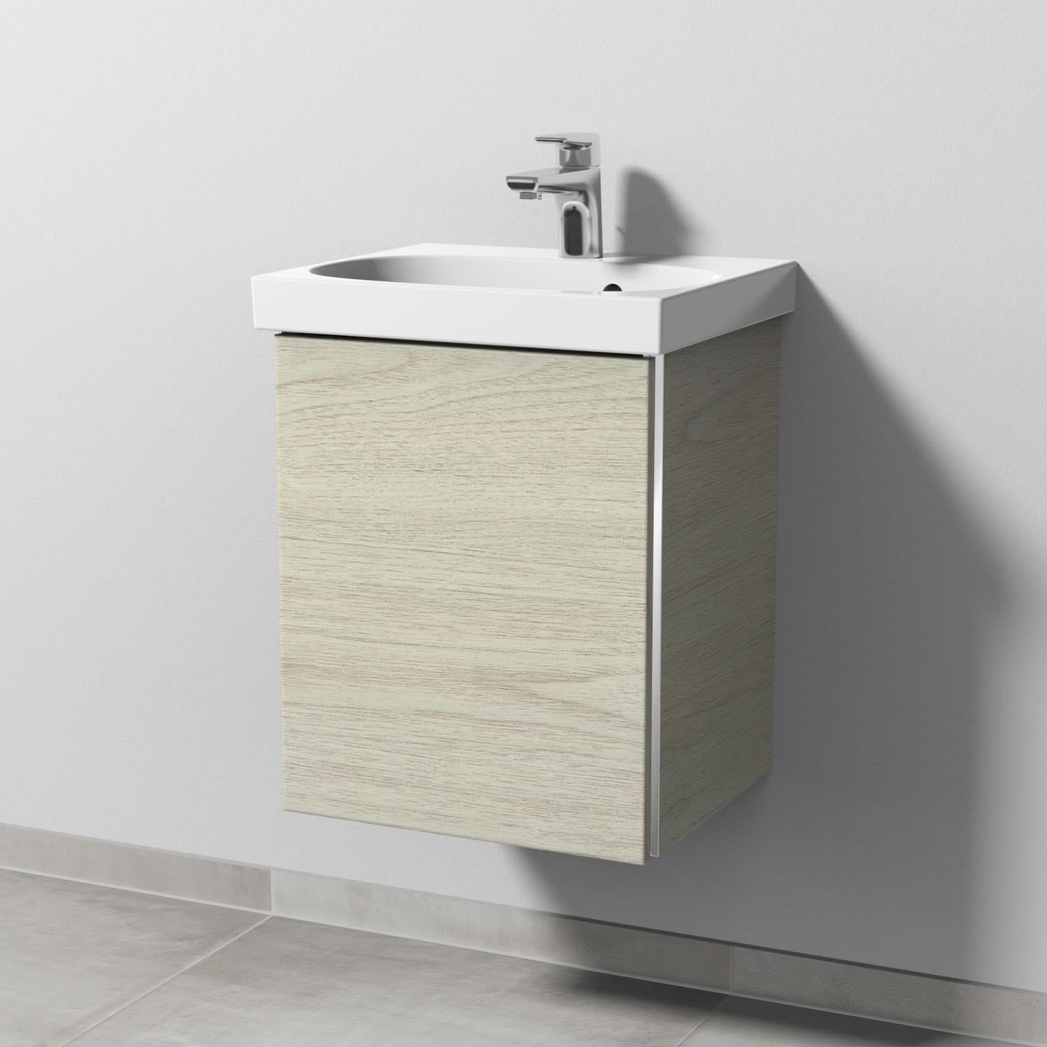 Sanipa 3way Waschtischunterbau für Keramik-Waschtisch Acanto 45 cm, 1 Tür, Anschlag links, mit Griffleiste