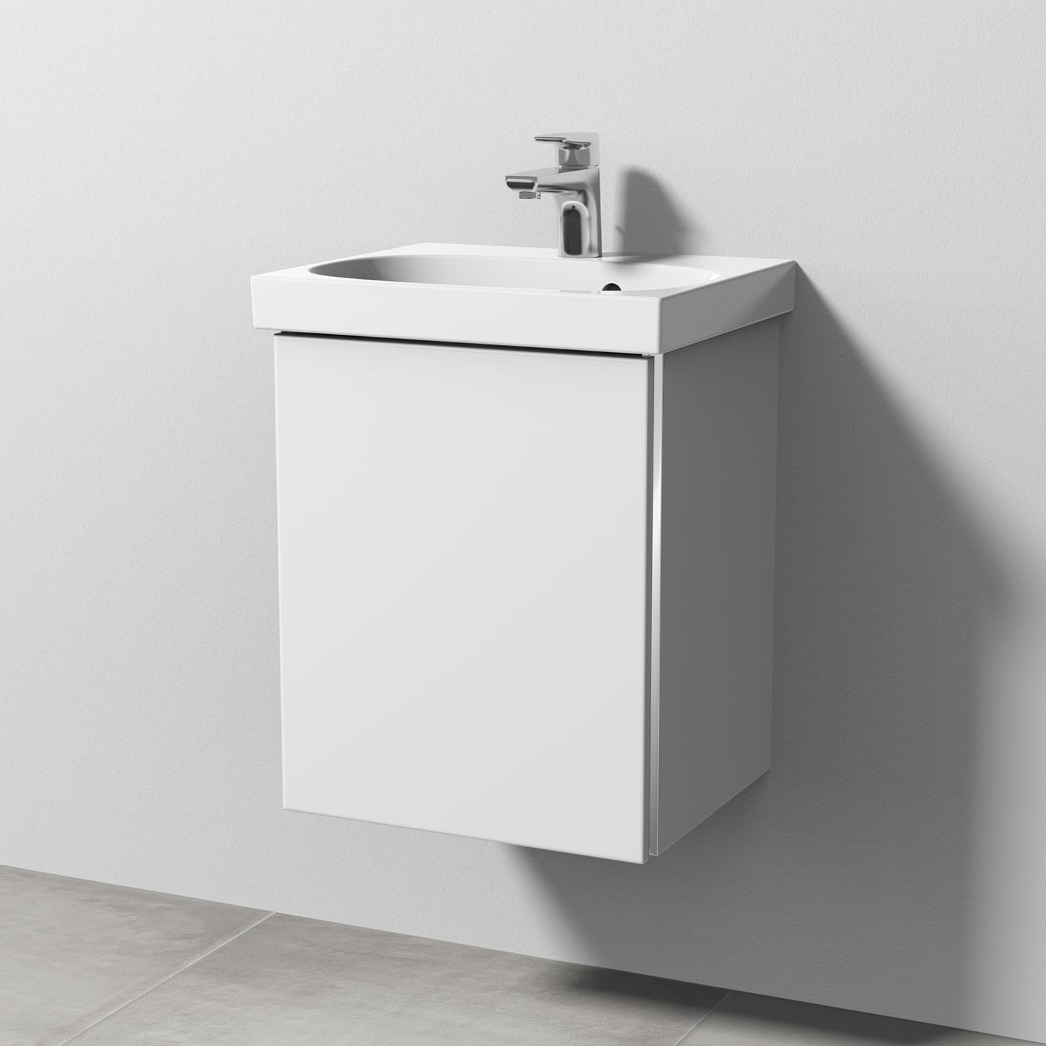 Sanipa 3way Waschtischunterbau für Keramik-Waschtisch Acanto 45 cm, 1 Tür, Anschlag links, mit Griffleiste