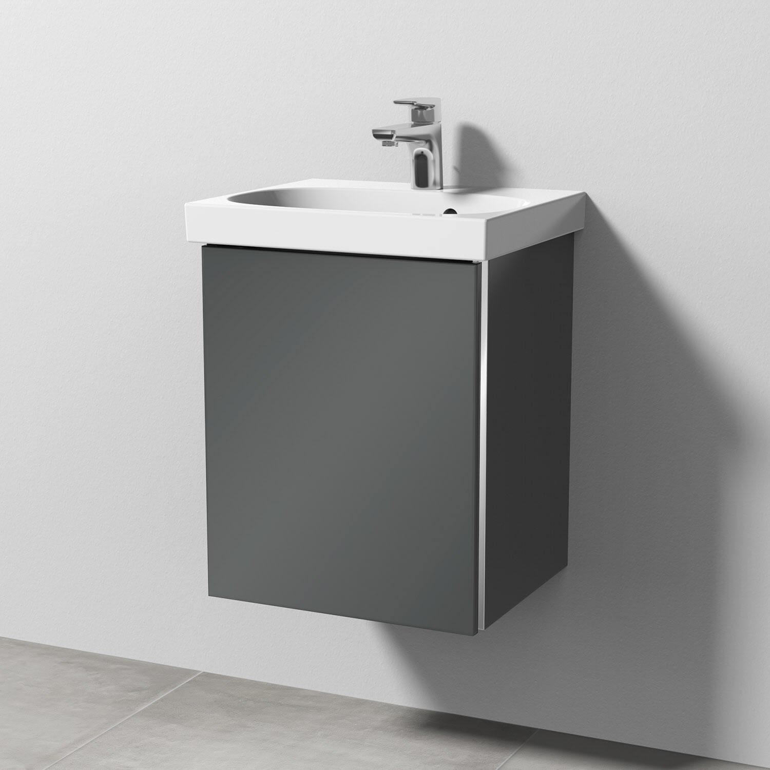 Sanipa 3way Waschtischunterbau für Keramik-Waschtisch Acanto 45 cm, 1 Tür, Anschlag links, mit Griffleiste