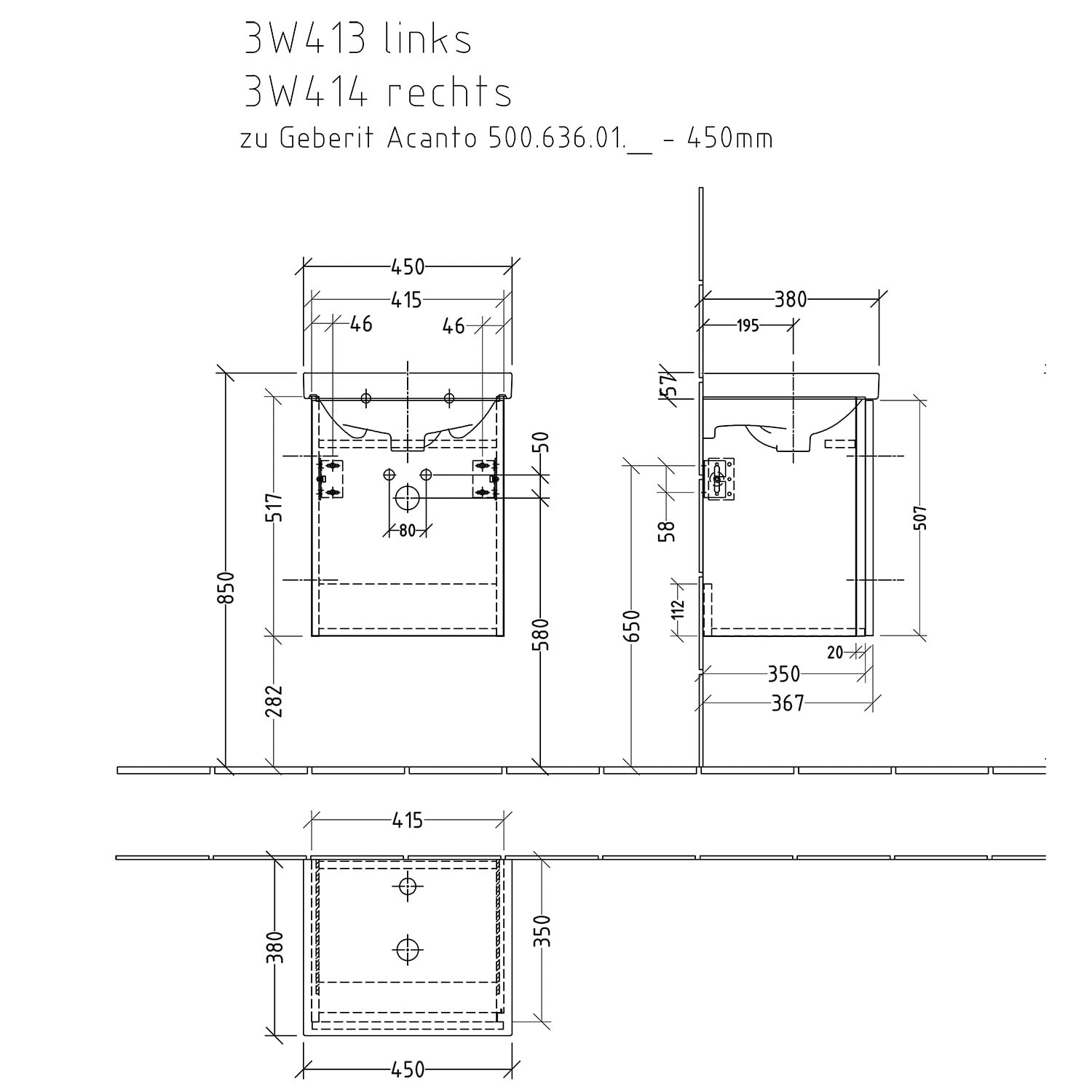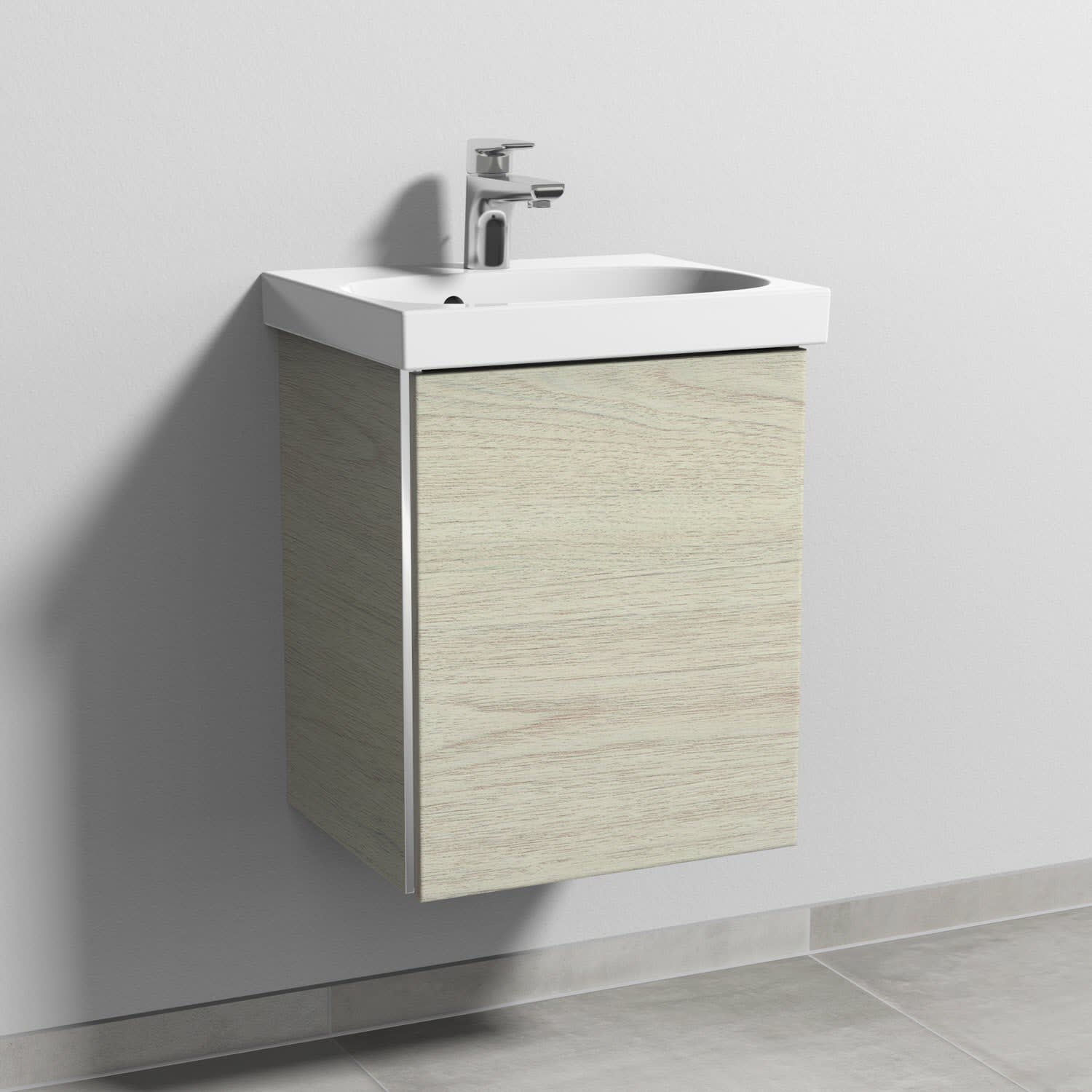Sanipa 3way Waschtischunterbau für Keramik-Waschtisch Acanto 45 cm, 1 Tür, Anschlag rechts, mit Griffleiste