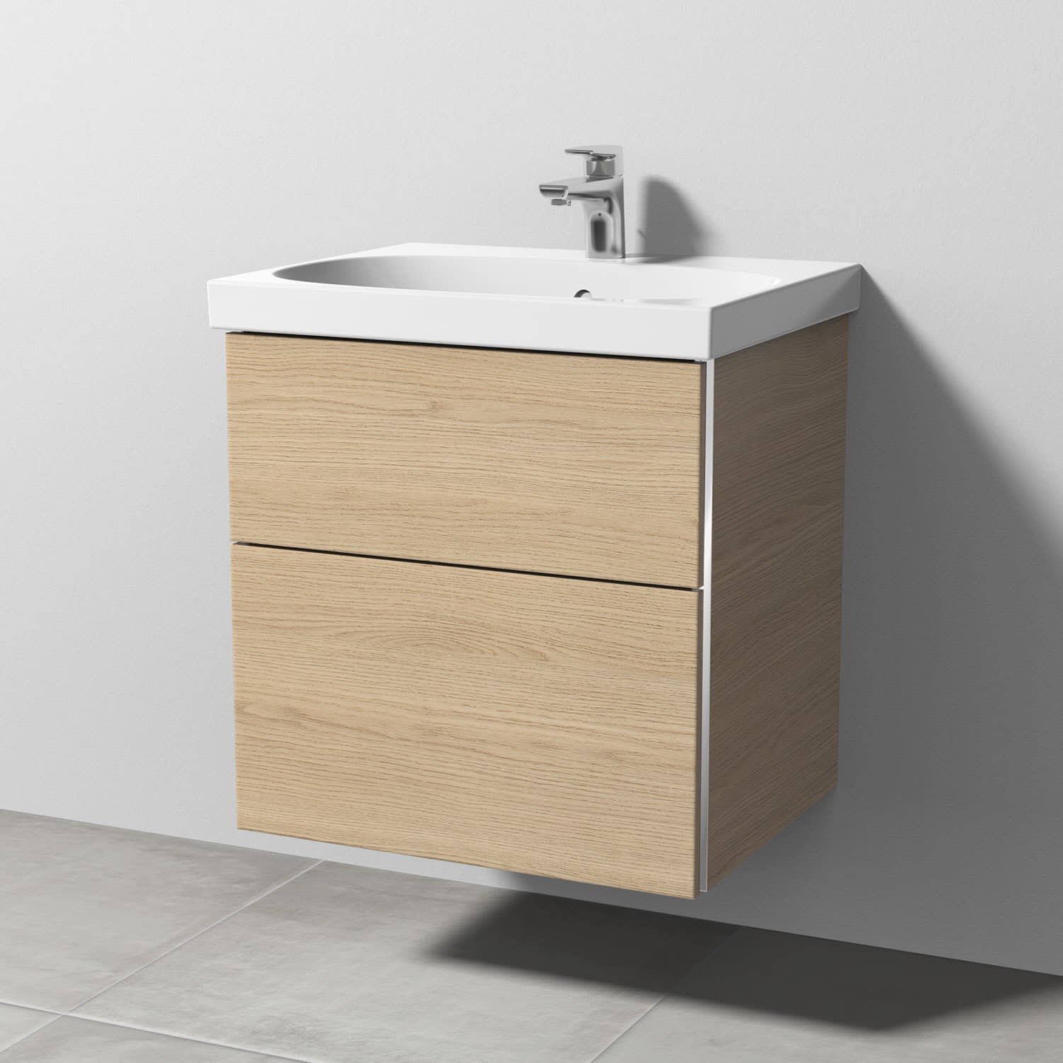 Sanipa 3way Waschtischunterbau für Keramik-Waschtisch Acanto 60 cm, 2 Auszüge mit Griffleisten