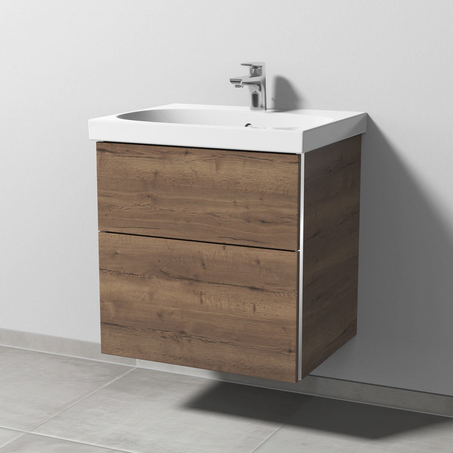 Sanipa 3way Waschtischunterbau für Keramik-Waschtisch Acanto 60 cm, 2 Auszüge mit Griffleisten