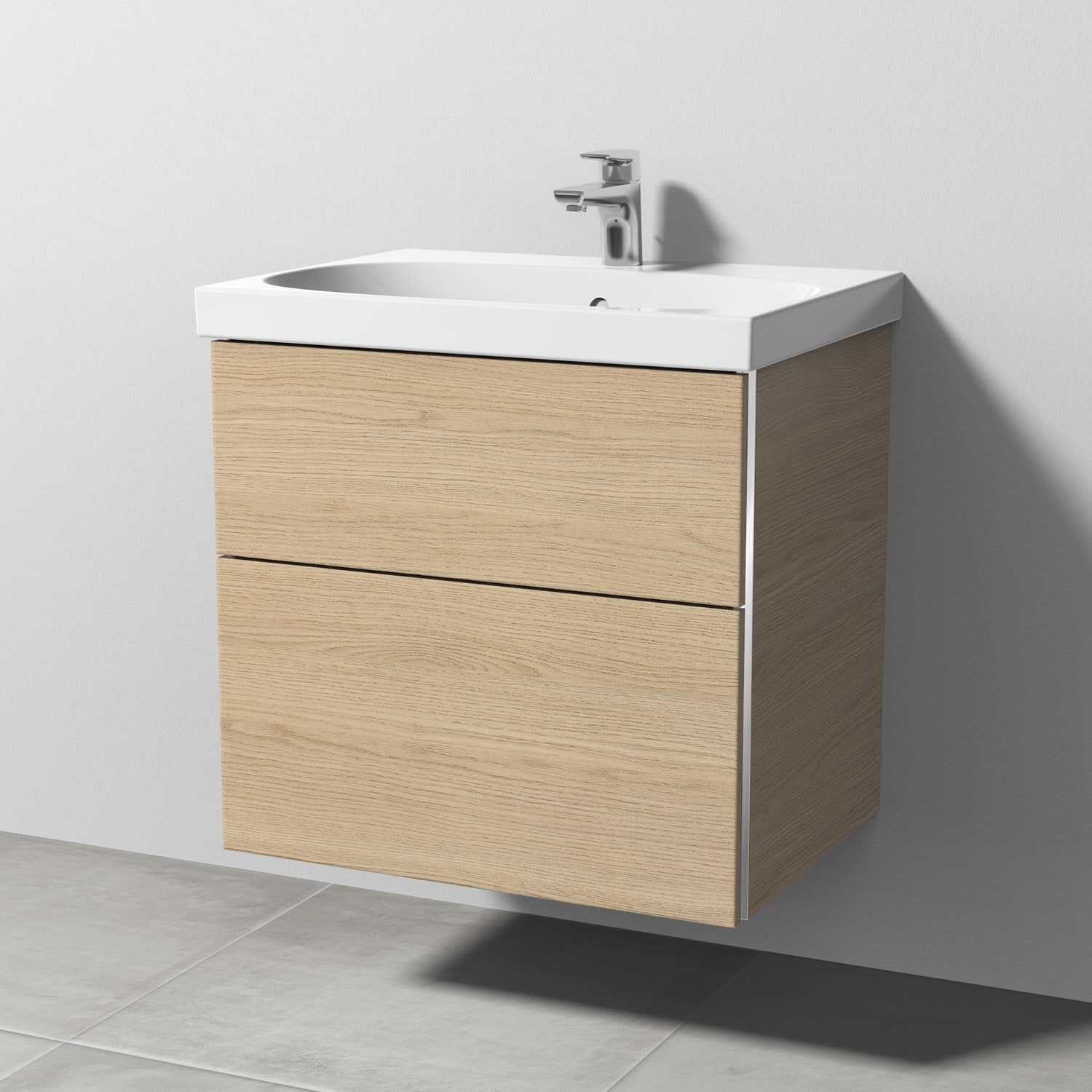 Sanipa 3way Waschtischunterbau für Keramik-Waschtisch Acanto 65 cm, 2 Auszüge mit Griffleisten