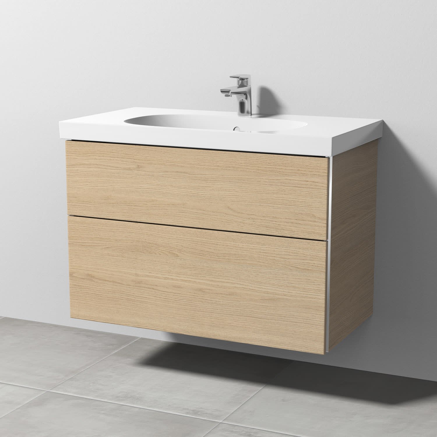 Sanipa 3way Waschtischunterbau für Keramik-Waschtisch Acanto 90 cm, 2 Auszüge mit Griffleisten
