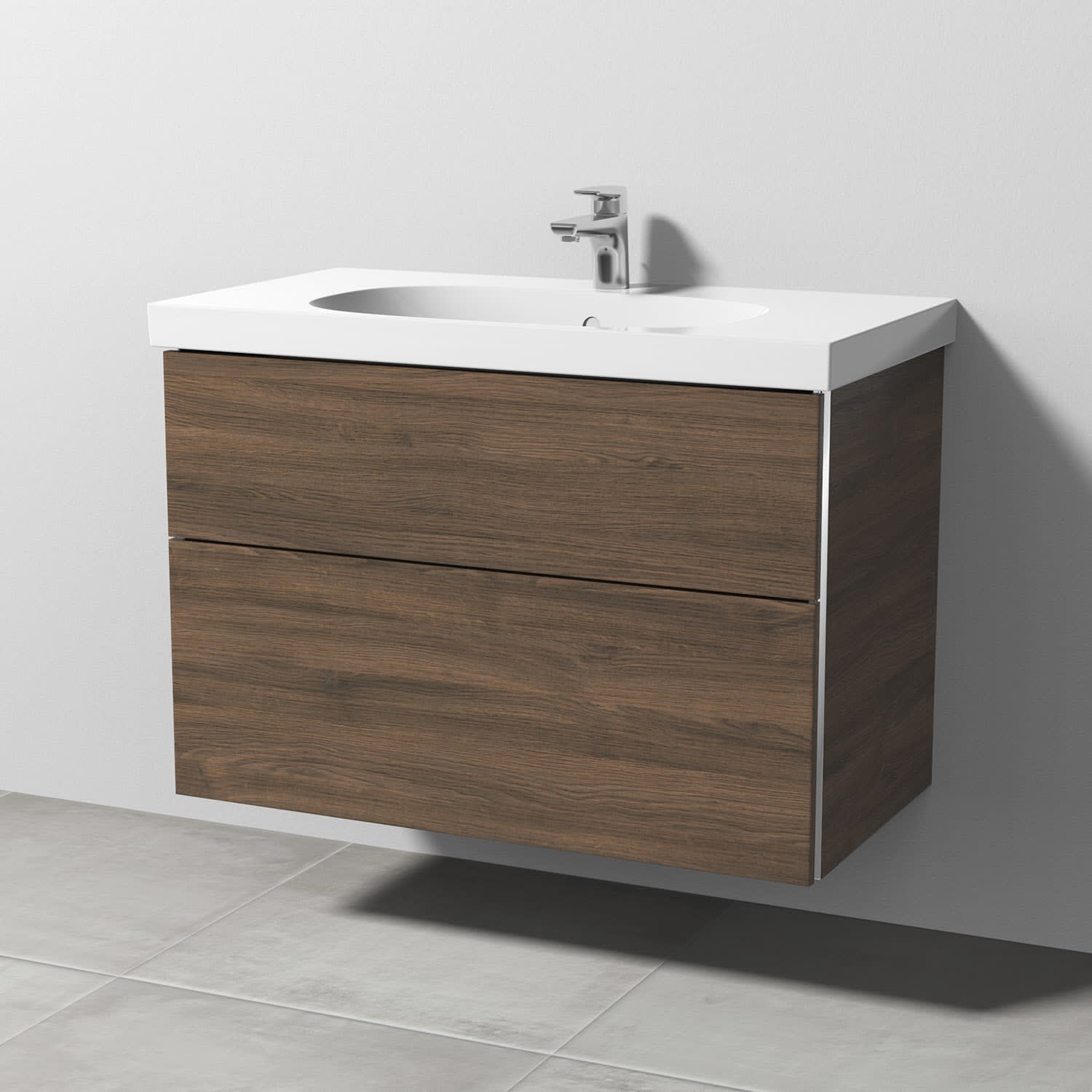 Sanipa 3way Waschtischunterbau für Keramik-Waschtisch Acanto 90 cm, 2 Auszüge mit Griffleisten