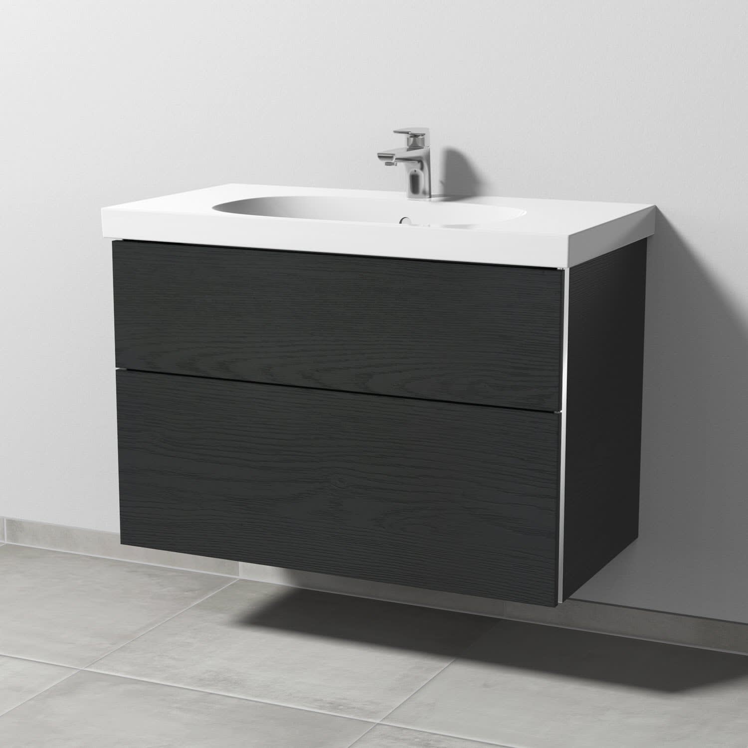Sanipa 3way Waschtischunterbau für Keramik-Waschtisch Acanto 90 cm, 2 Auszüge mit Griffleisten