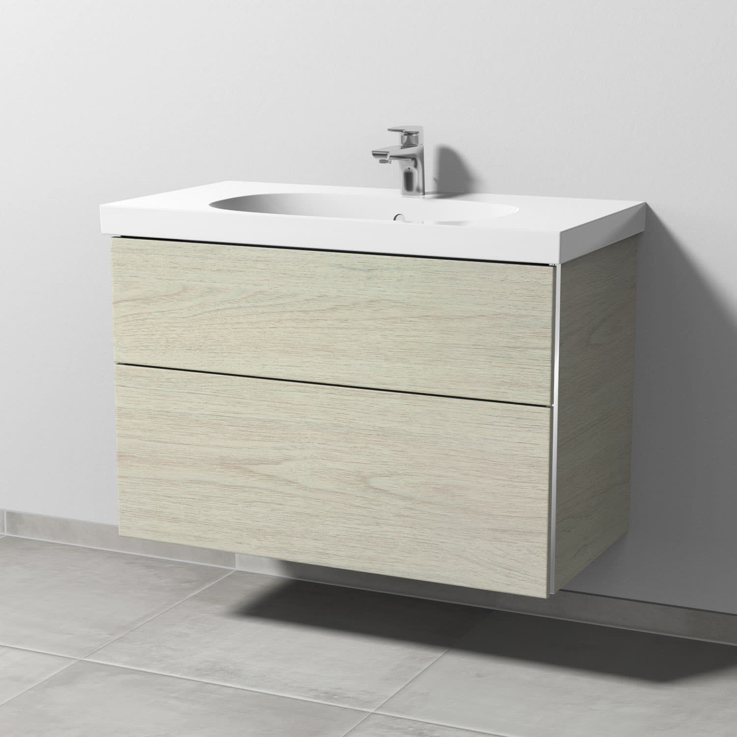 Sanipa 3way Waschtischunterbau für Keramik-Waschtisch Acanto 90 cm, 2 Auszüge mit Griffleisten