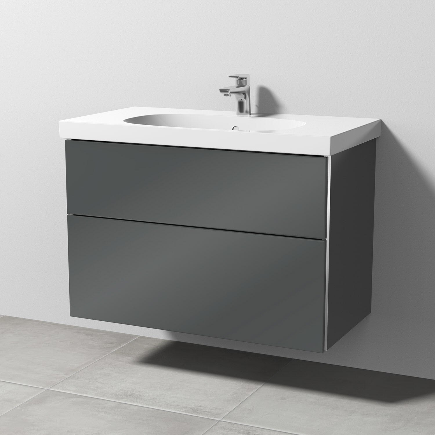 Sanipa 3way Waschtischunterbau für Keramik-Waschtisch Acanto 90 cm, 2 Auszüge mit Griffleisten