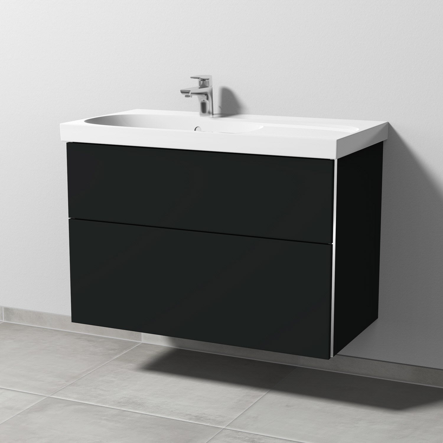 Sanipa 3way Waschtischunterbau für Keramik-Waschtisch Acanto 90 cm Ablagefläche rechts, 2 Auszüge mit Griffleisten