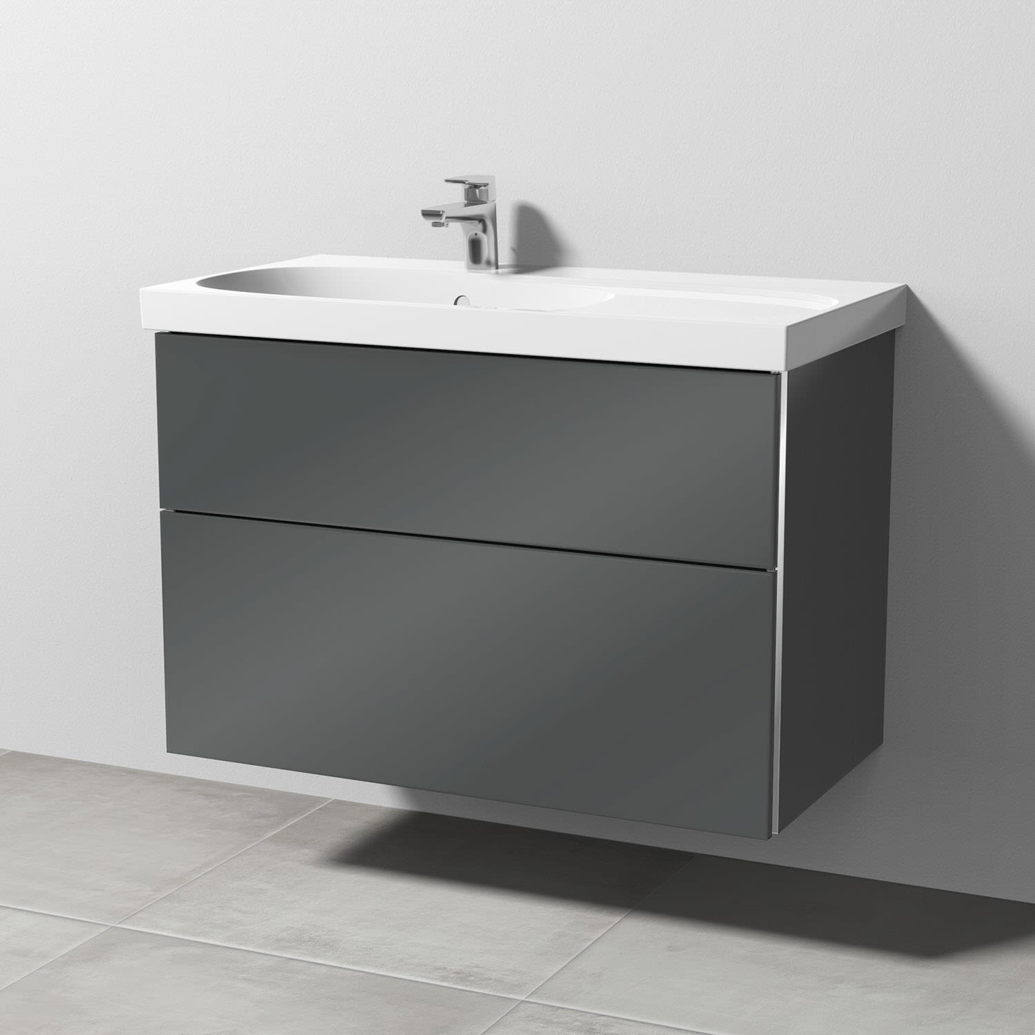 Sanipa 3way Waschtischunterbau für Keramik-Waschtisch Acanto 90 cm Ablagefläche rechts, 2 Auszüge mit Griffleisten