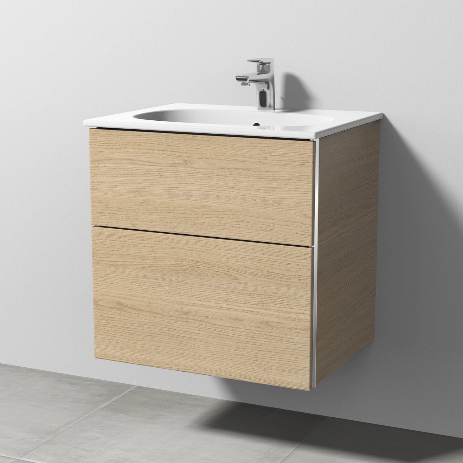 Sanipa 3way Waschtischunterbau für Keramik-Waschtisch Acanto Slim 60 cm, 2 Auszüge mit Griffleisten