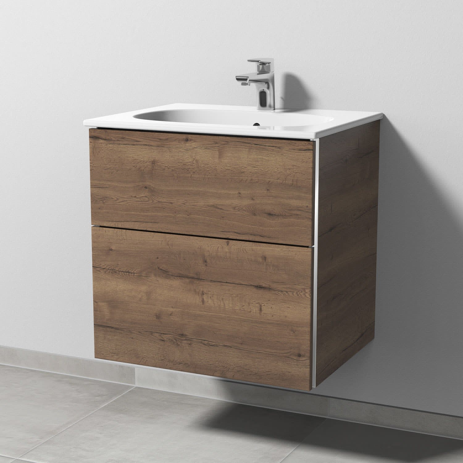 Sanipa 3way Waschtischunterbau für Keramik-Waschtisch Acanto Slim 60 cm, 2 Auszüge mit Griffleisten