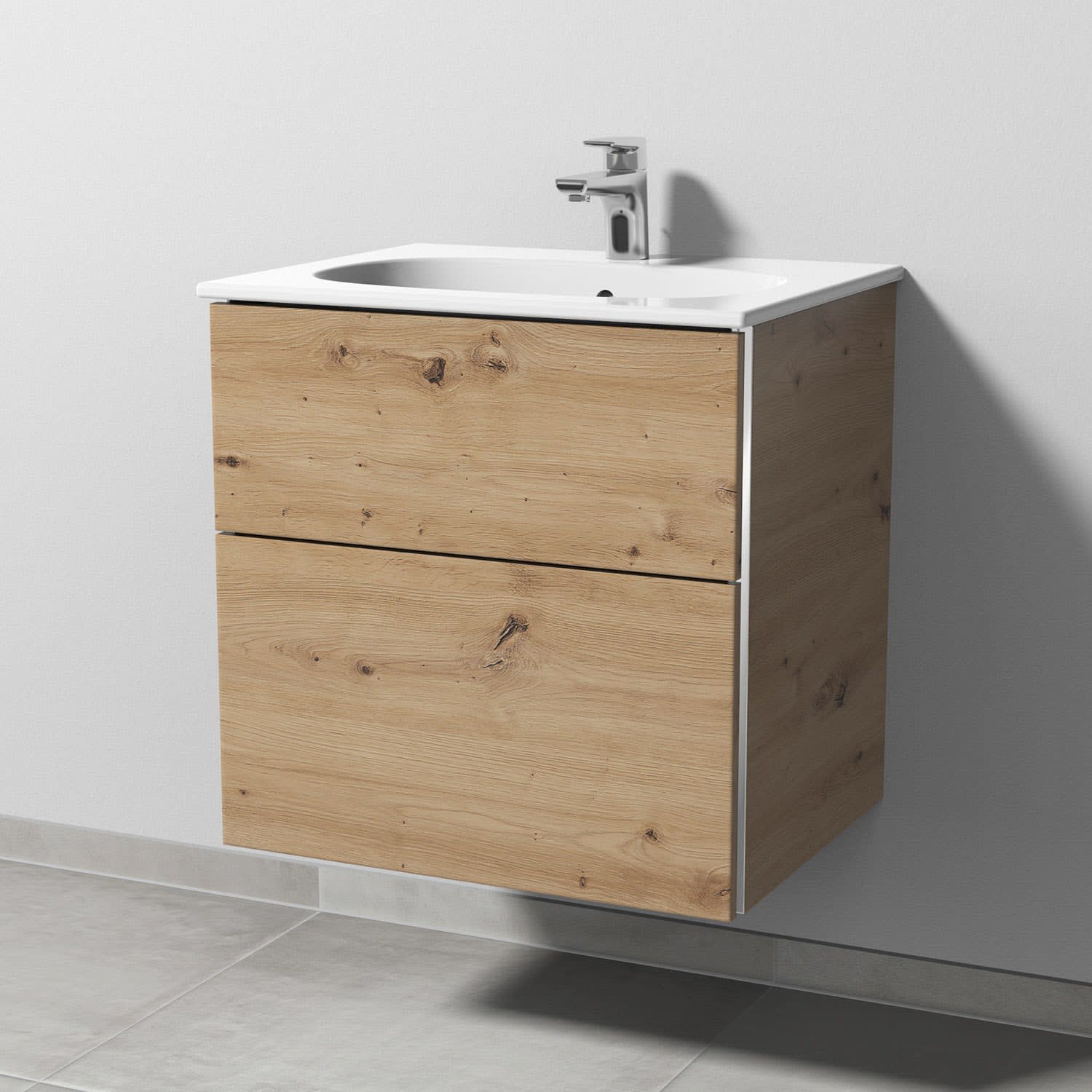 Sanipa 3way Waschtischunterbau für Keramik-Waschtisch Acanto Slim 60 cm, 2 Auszüge mit Griffleisten