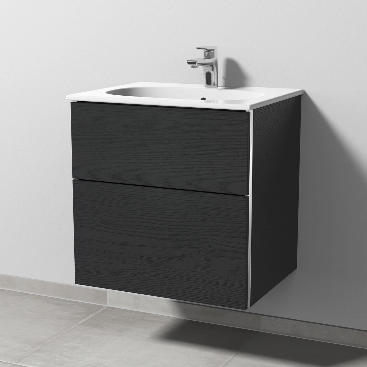 Sanipa 3way Waschtischunterbau für Keramik-Waschtisch Acanto Slim 60 cm, 2 Auszüge mit Griffleisten