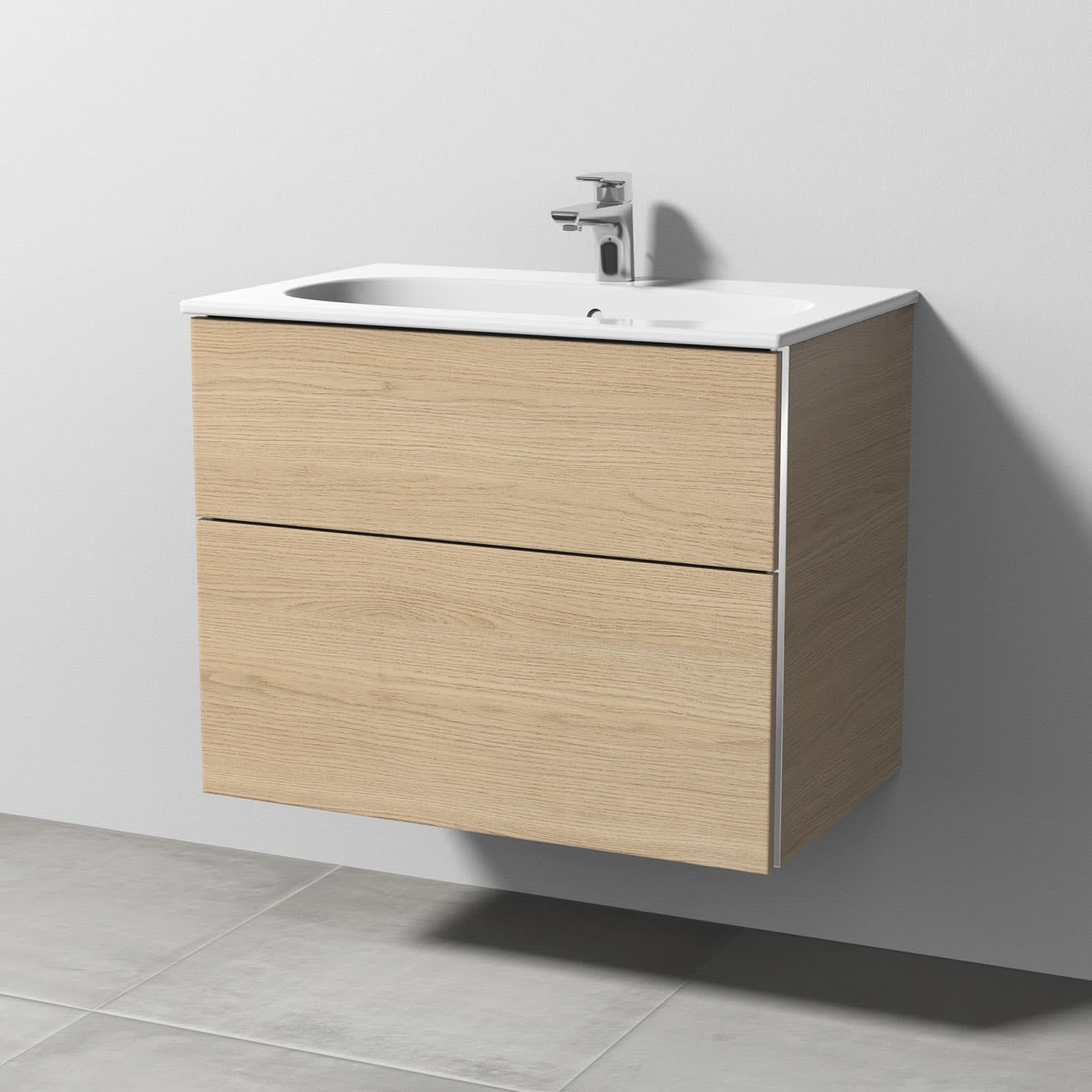 Sanipa 3way Waschtischunterbau für Keramik-Waschtisch Acanto Slim 75 cm, 2 Auszüge mit Griffleisten