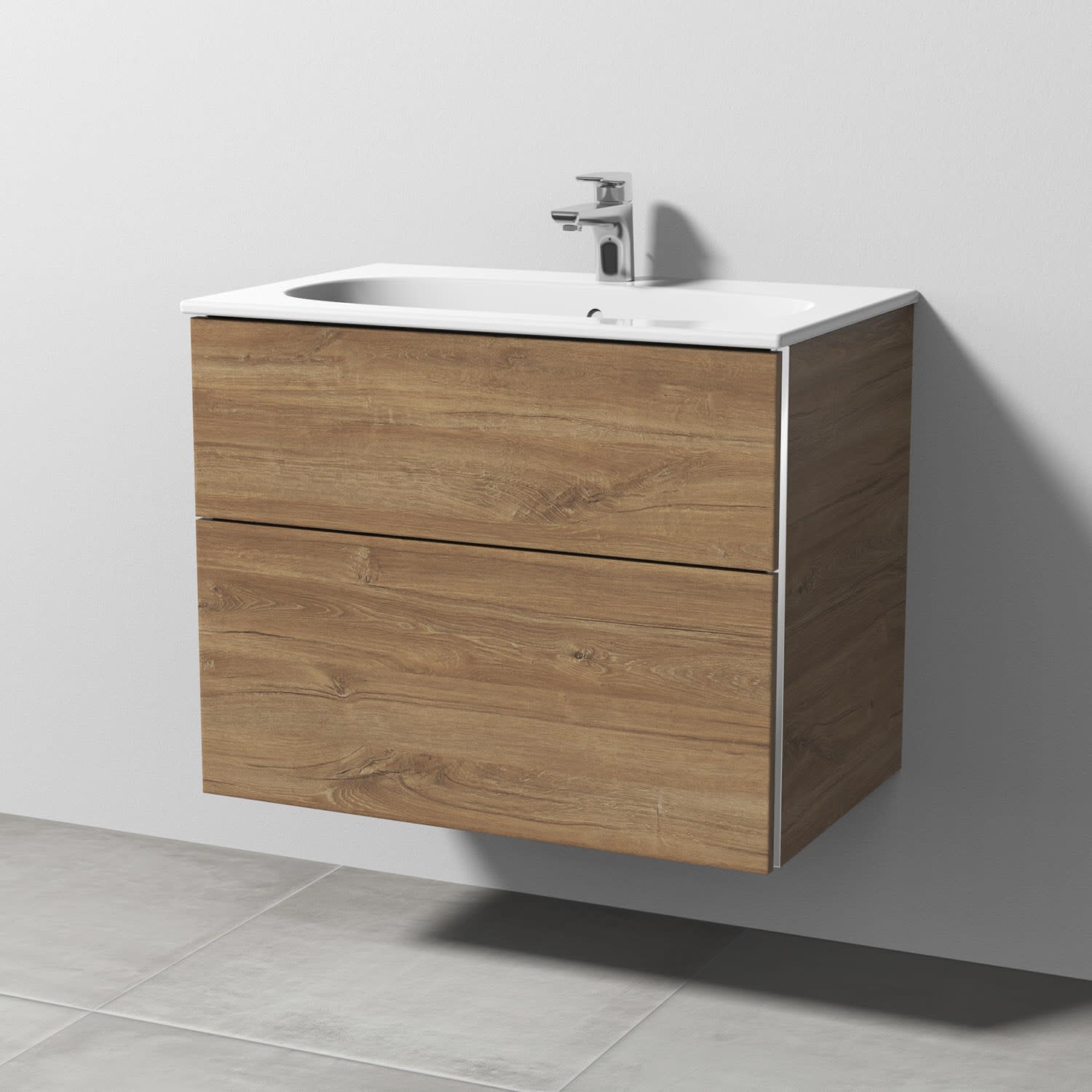 Sanipa 3way Waschtischunterbau für Keramik-Waschtisch Acanto Slim 75 cm, 2 Auszüge mit Griffleisten