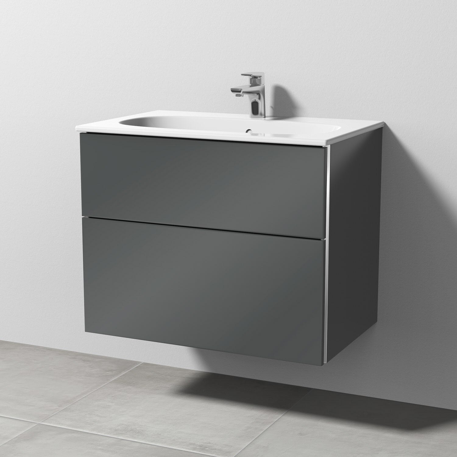 Sanipa 3way Waschtischunterbau für Keramik-Waschtisch Acanto Slim 75 cm, 2 Auszüge mit Griffleisten