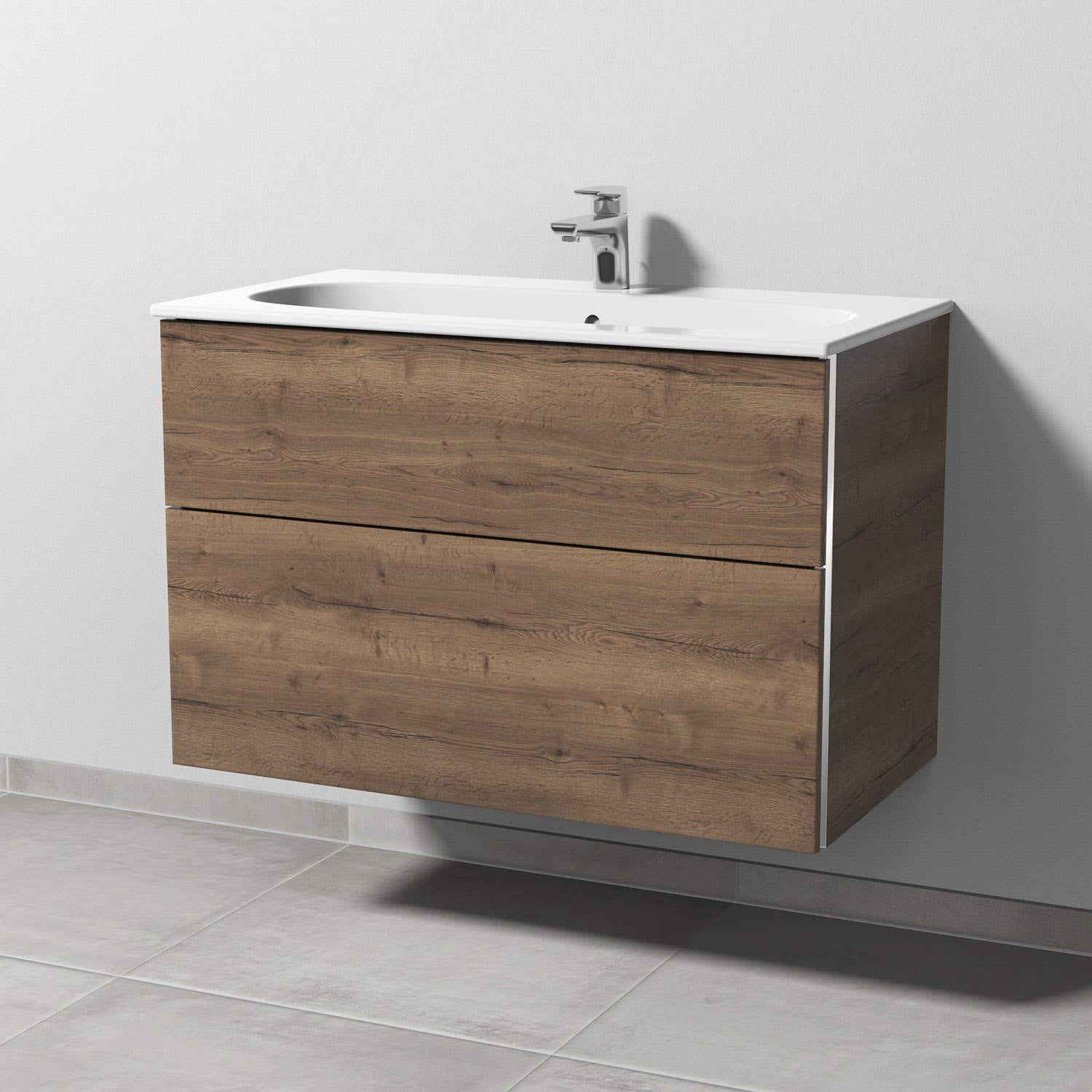 Sanipa 3way Waschtischunterbau für Keramik-Waschtisch Acanto Slim 90 cm, 2 Auszüge mit Griffleisten