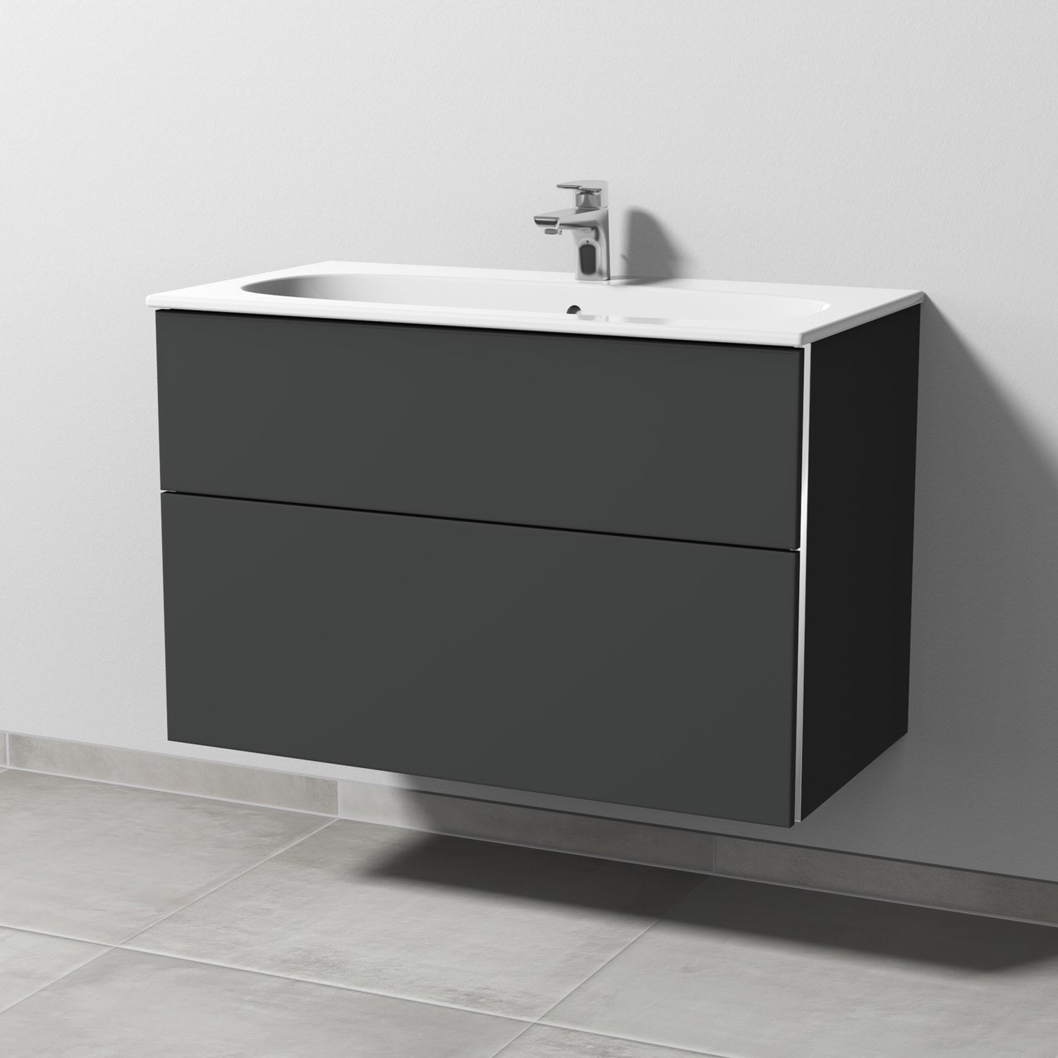 Sanipa 3way Waschtischunterbau für Keramik-Waschtisch Acanto Slim 90 cm, 2 Auszüge mit Griffleisten