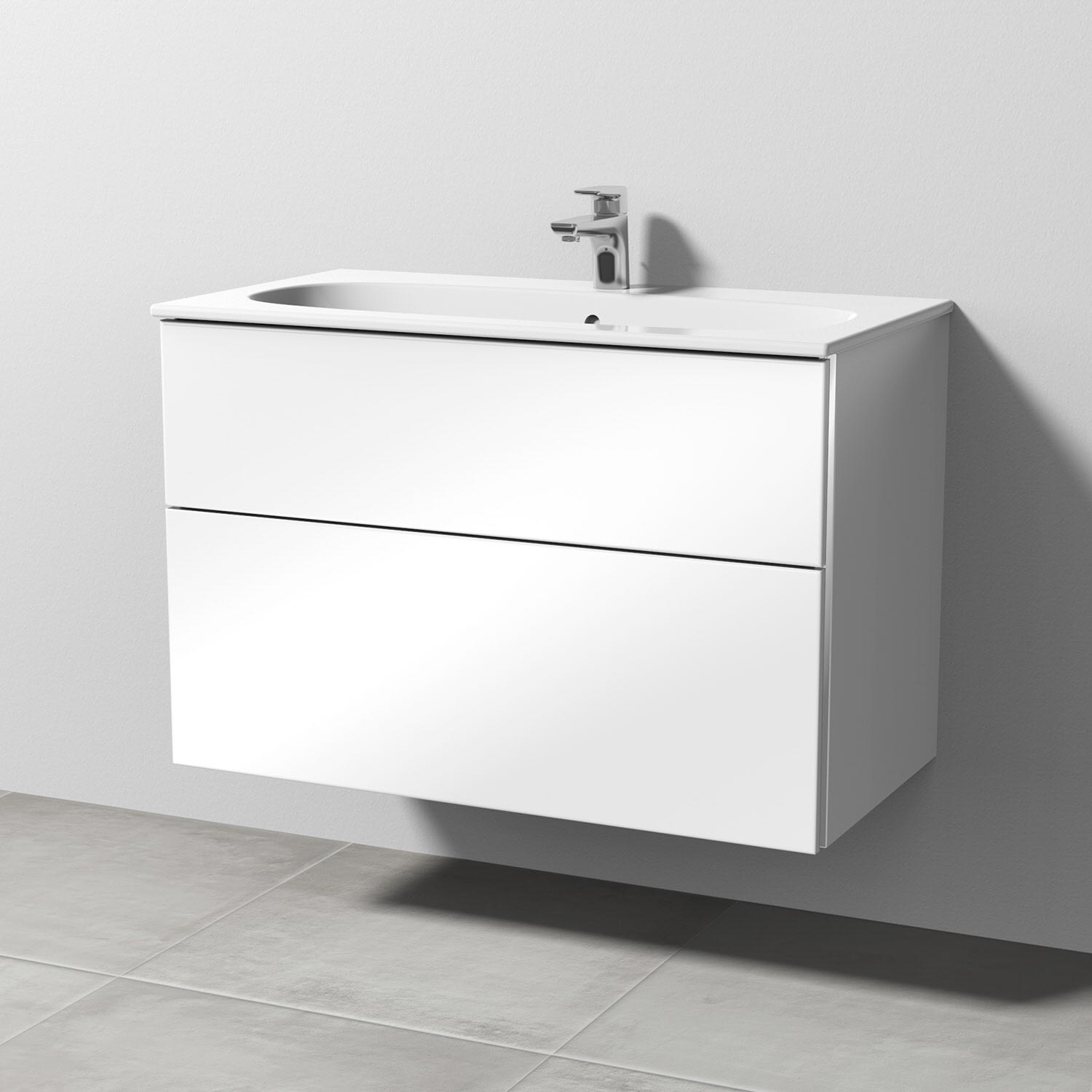 Sanipa 3way Waschtischunterbau für Keramik-Waschtisch Acanto Slim 90 cm, 2 Auszüge mit Griffleisten