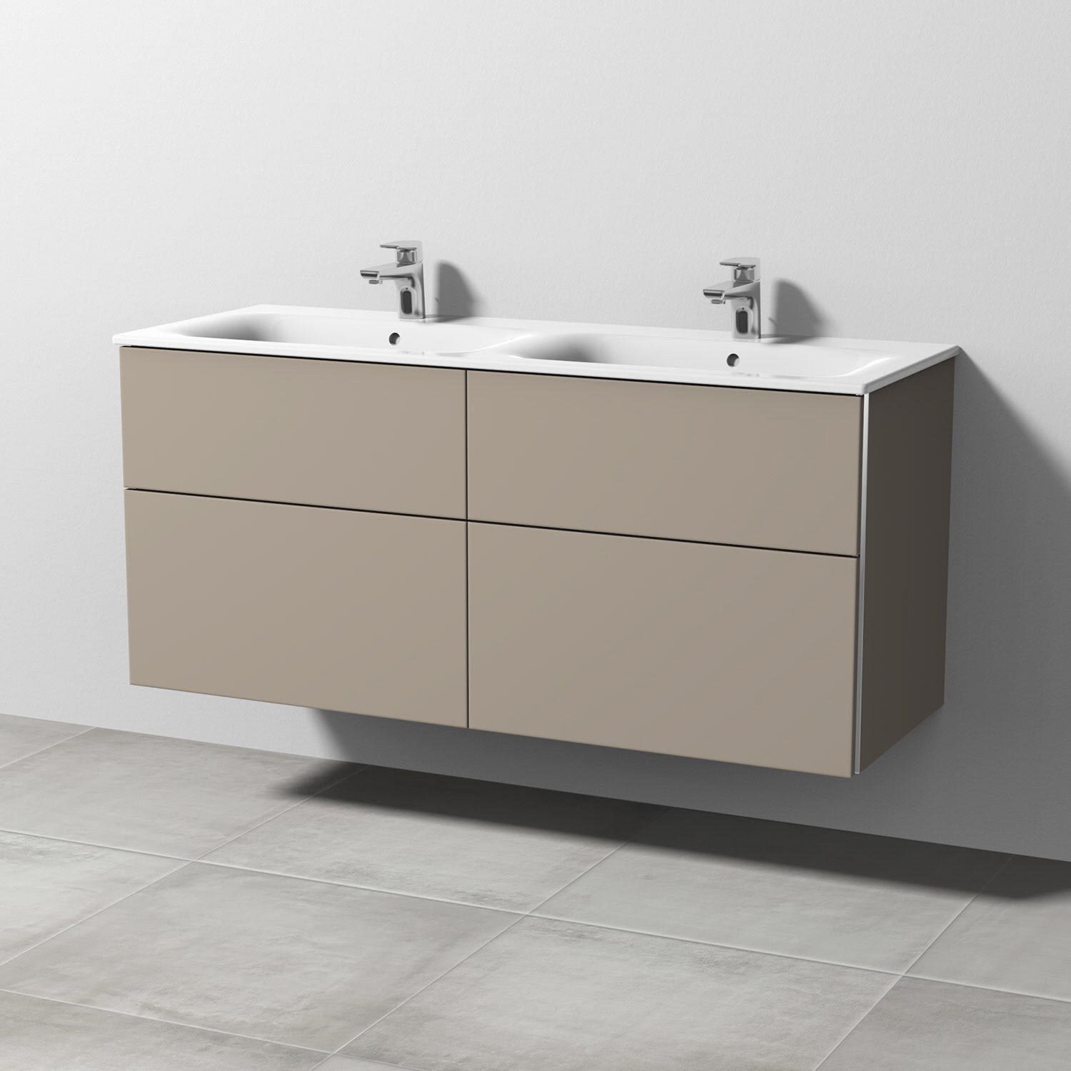 Sanipa 3way Waschtischunterbau für Keramik-Doppelwaschtisch Renova Plan Slim 130 cm, 4 Auszüge mit Griffleisten