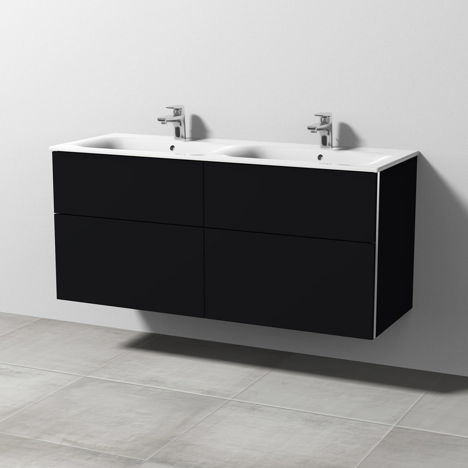 Sanipa 3way Waschtischunterbau für Keramik-Doppelwaschtisch Renova Plan Slim 130 cm, 4 Auszüge mit Griffleisten