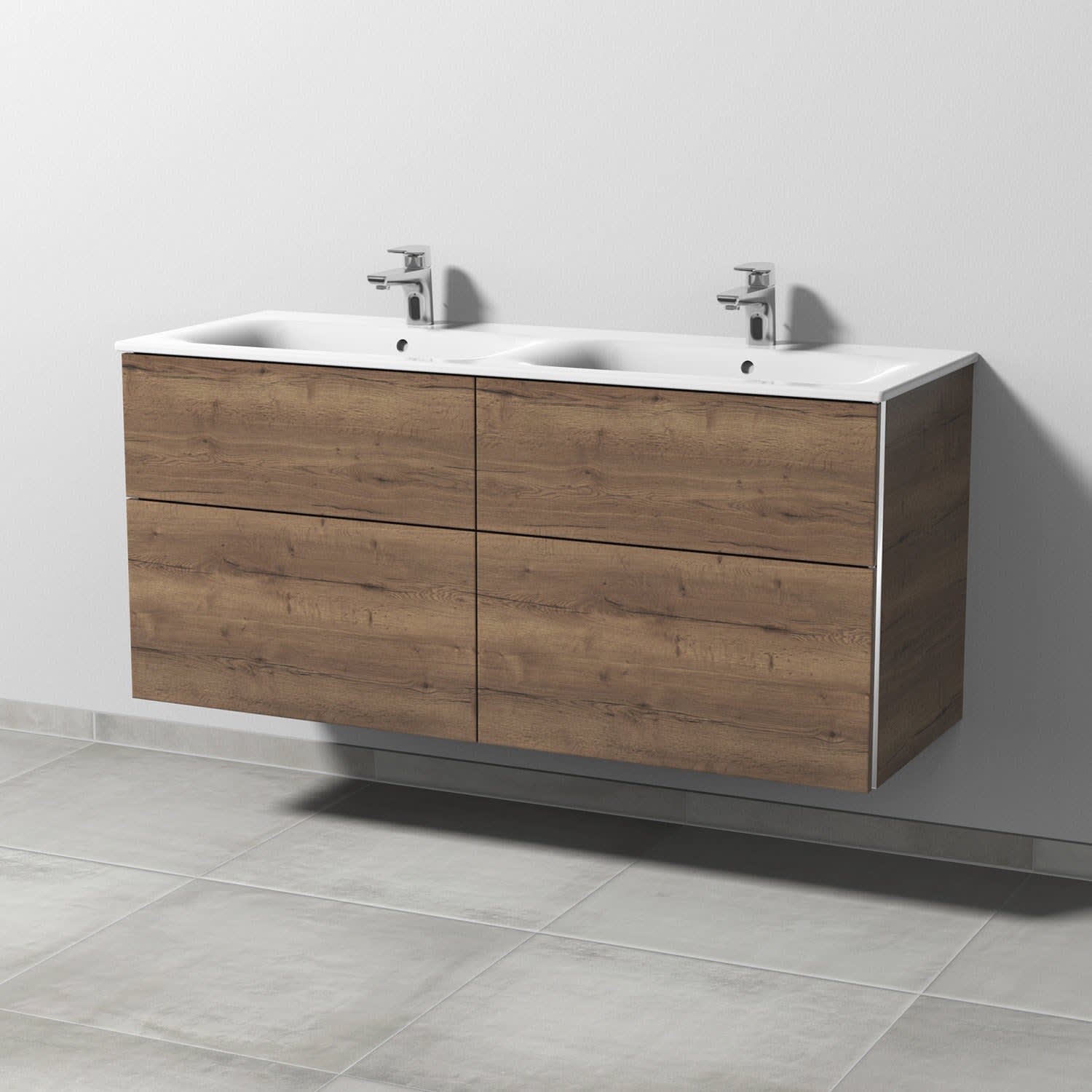 Sanipa 3way Waschtischunterbau für Keramik-Doppelwaschtisch Renova Plan Slim 130 cm, 4 Auszüge mit Griffleisten