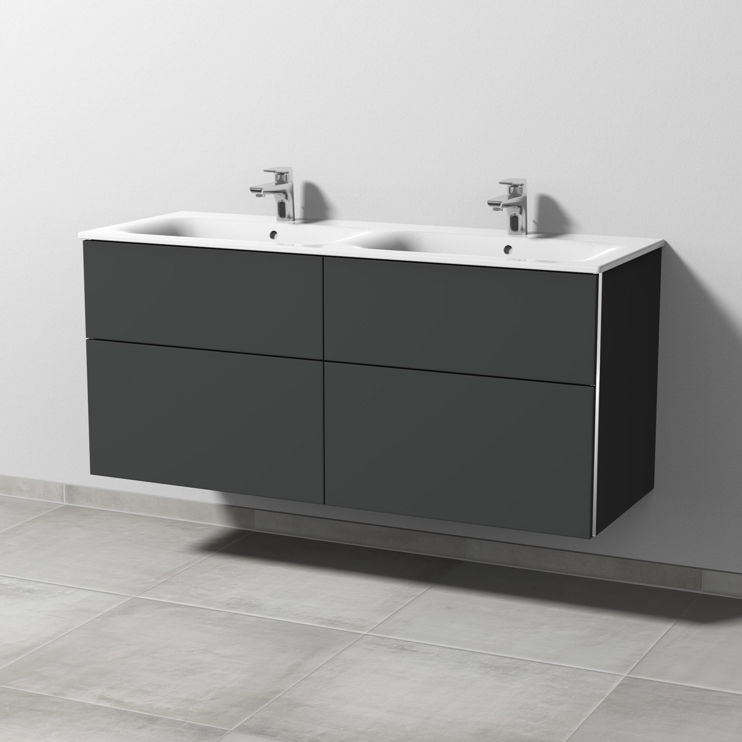 Sanipa 3way Waschtischunterbau für Keramik-Doppelwaschtisch Renova Plan Slim 130 cm, 4 Auszüge mit Griffleisten