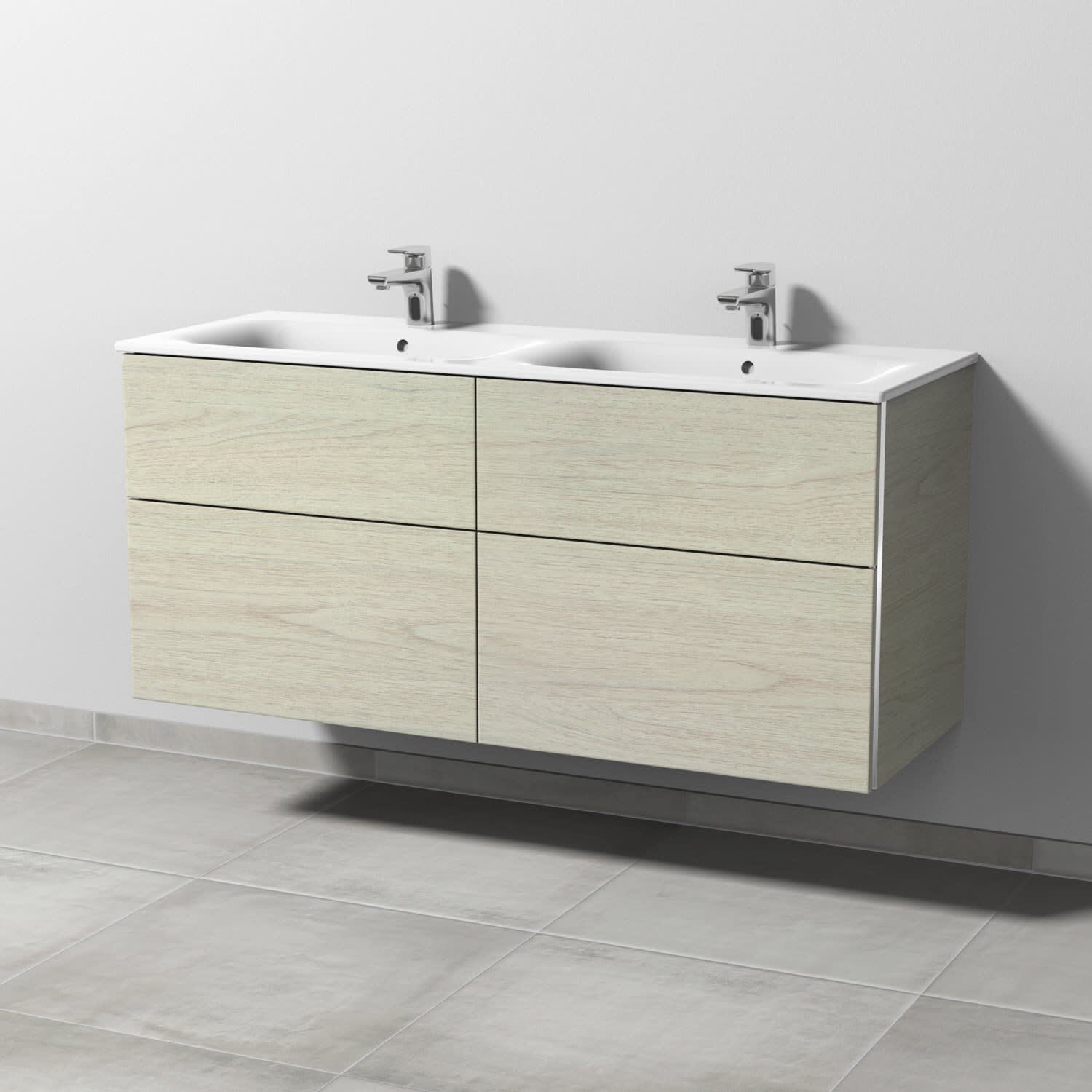 Sanipa 3way Waschtischunterbau für Keramik-Doppelwaschtisch Renova Plan Slim 130 cm, 4 Auszüge mit Griffleisten