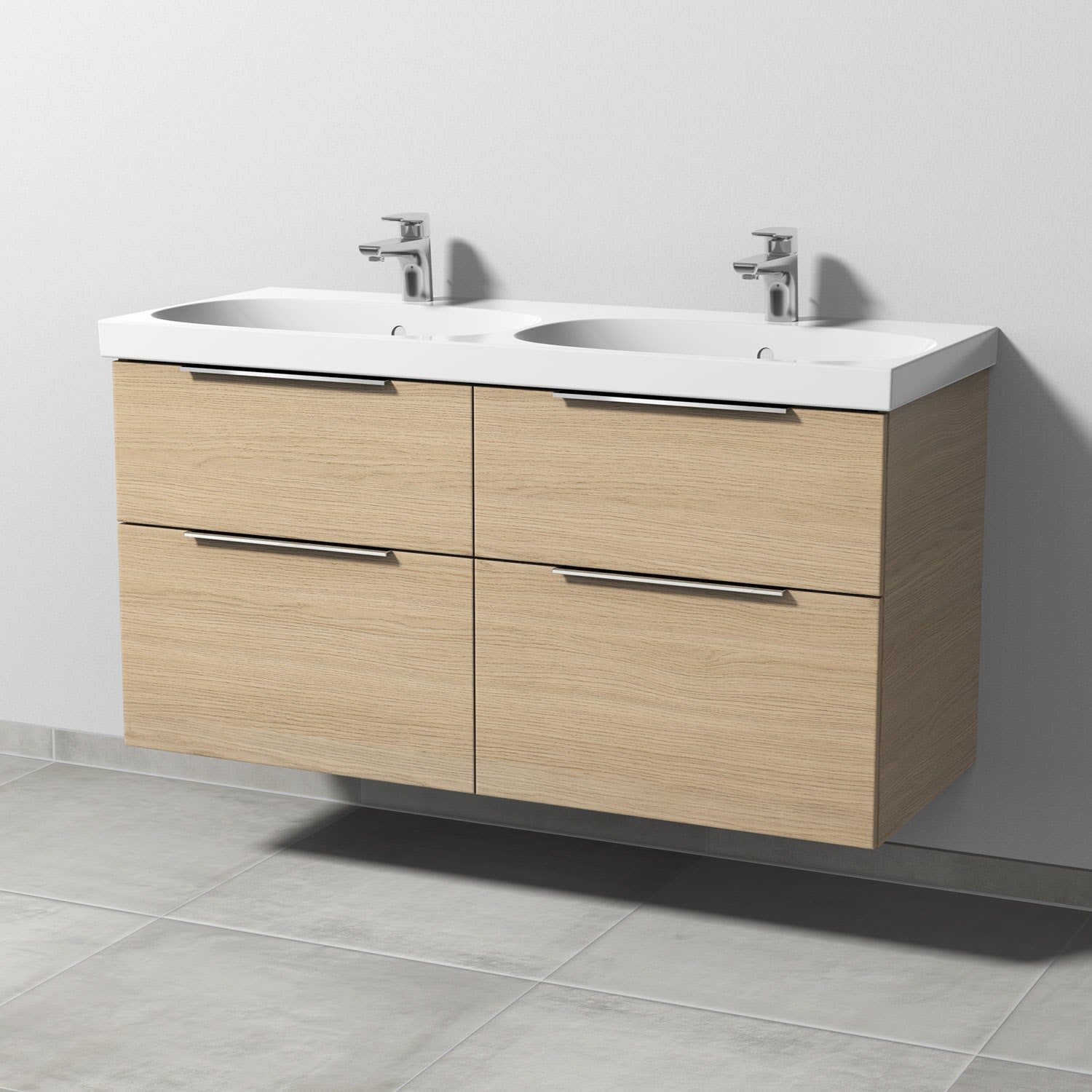 Sanipa 3way Waschtischunterbau für Keramik-Doppelwaschtisch Acanto 120 cm, 4 Auszüge mit Aufsatzgriff