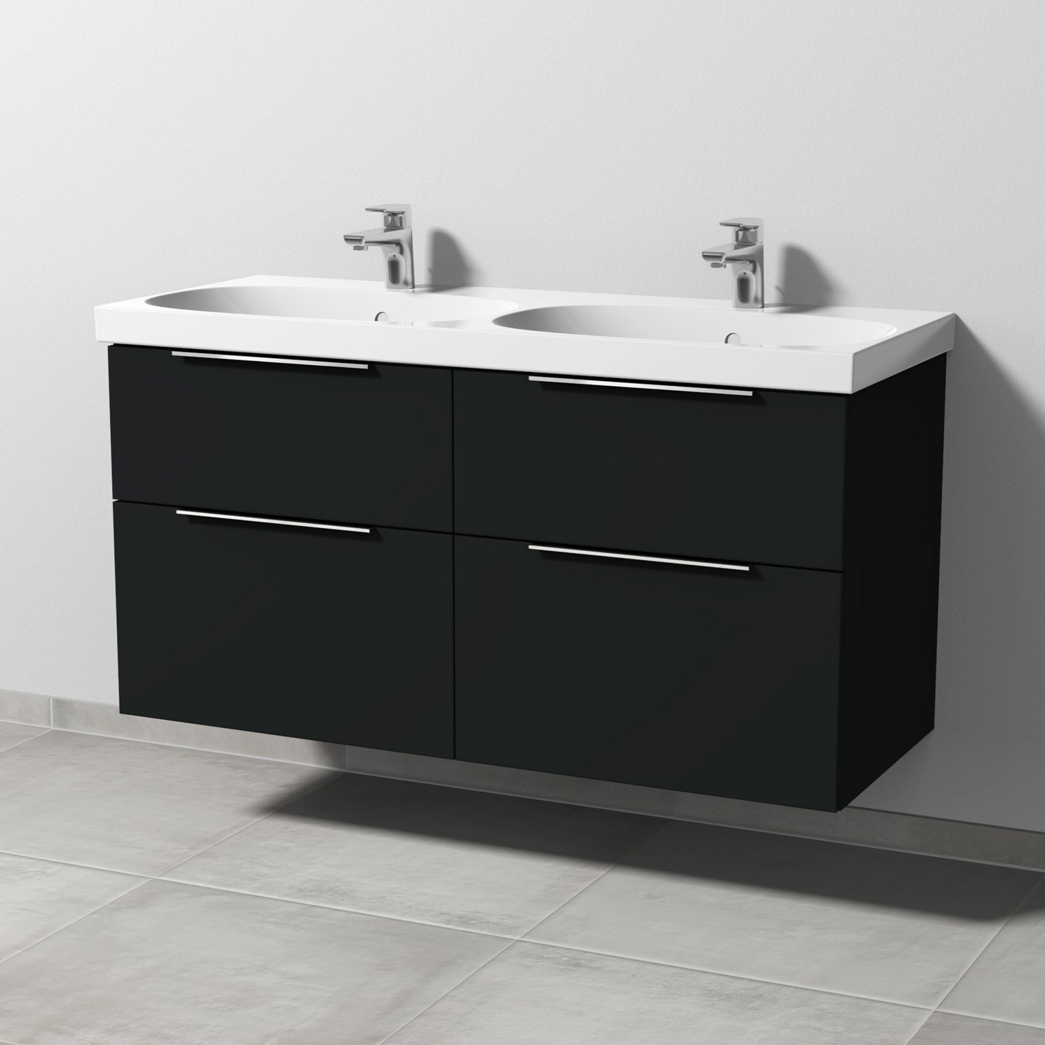 Sanipa 3way Waschtischunterbau für Keramik-Doppelwaschtisch Acanto 120 cm, 4 Auszüge mit Aufsatzgriff