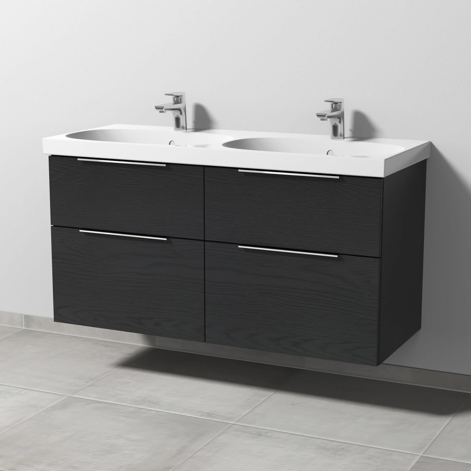 Sanipa 3way Waschtischunterbau für Keramik-Doppelwaschtisch Acanto 120 cm, 4 Auszüge mit Aufsatzgriff