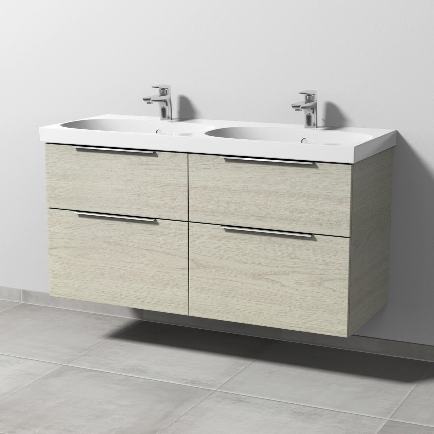 Sanipa 3way Waschtischunterbau für Keramik-Doppelwaschtisch Acanto 120 cm, 4 Auszüge mit Aufsatzgriff