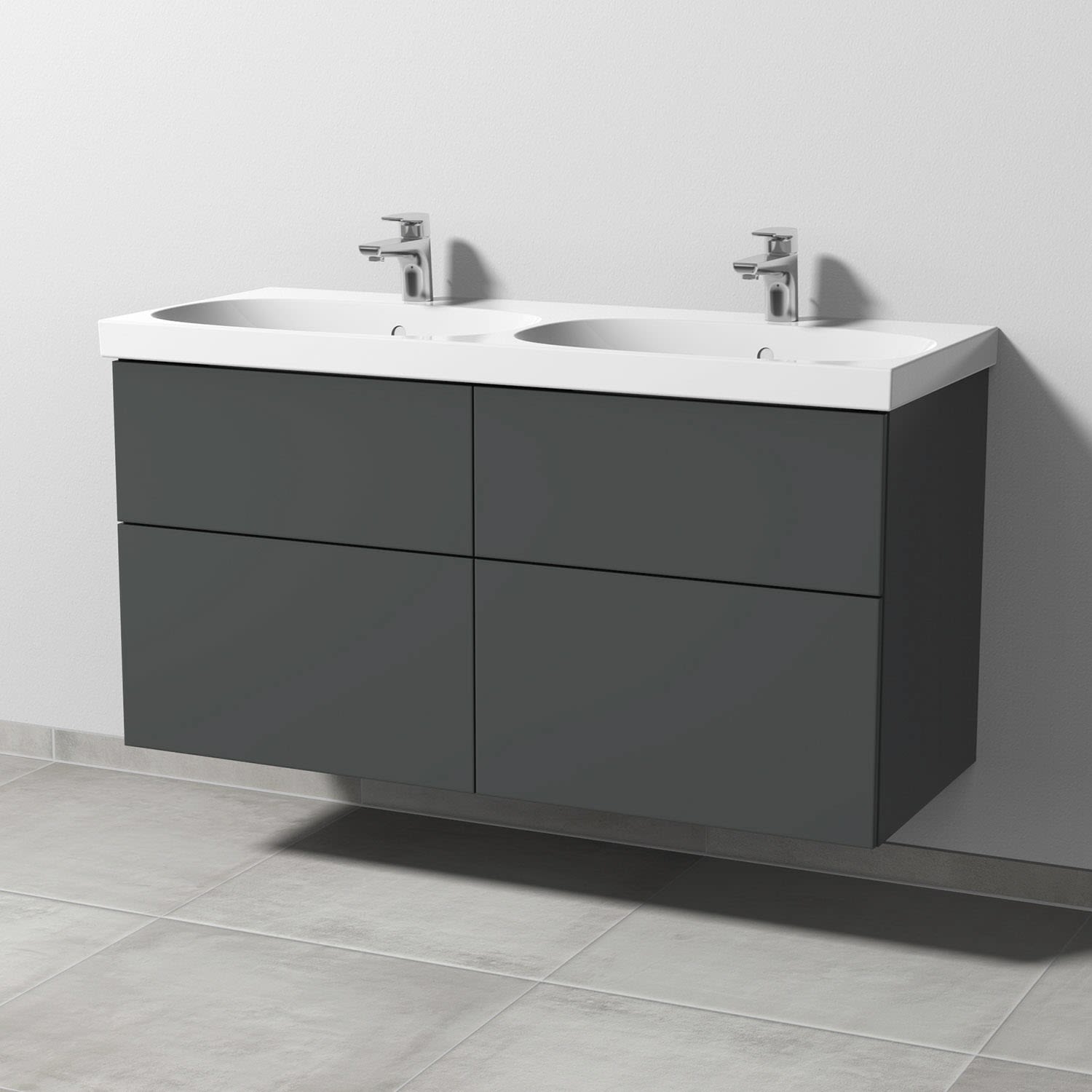 Sanipa 3way Waschtischunterbau für Keramik-Doppelwaschtisch Acanto 120 cm, 4 Auszüge mit Push to open