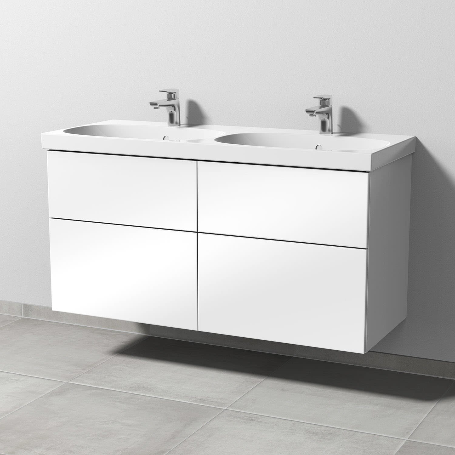 Sanipa 3way Waschtischunterbau für Keramik-Doppelwaschtisch Acanto 120 cm, 4 Auszüge mit Push to open